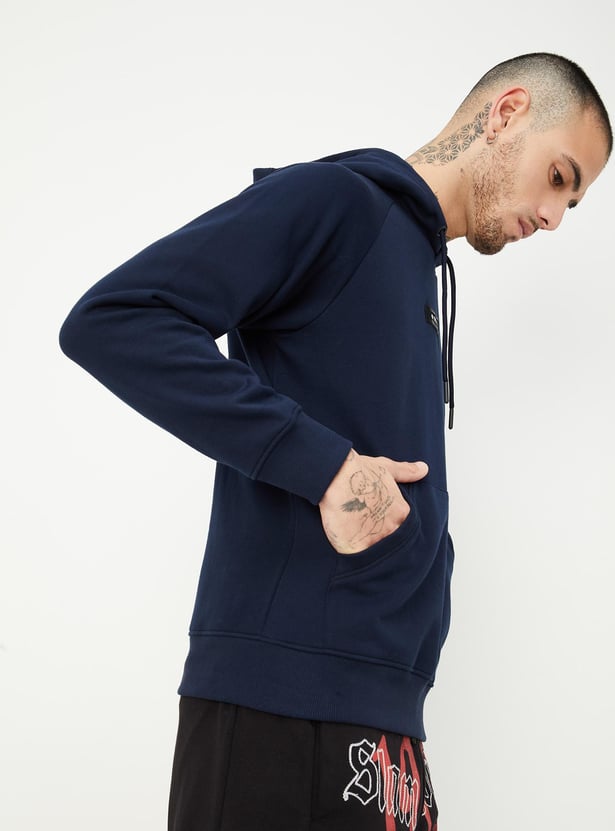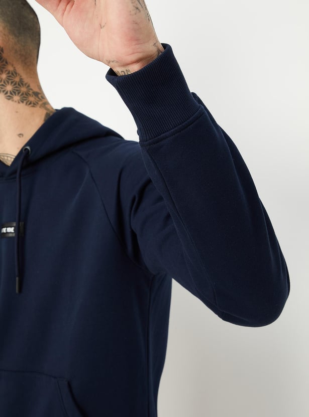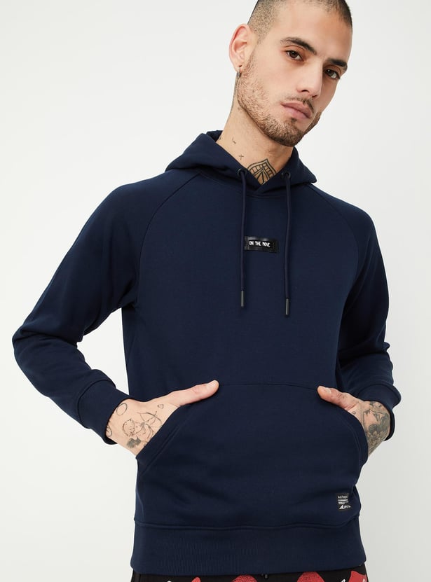 Set yourself for winter with this sweatshirt featuring a hooded neck, raglan sleeves, solid surface, ribbed hem, and kangaroo pockets. Team this with a pair of track pants and sneakers for a trendy look.