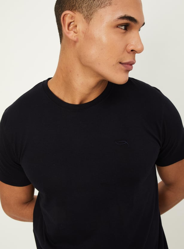 Build your basic wardrobe with this T-shirt rendered in a solid tone. It features a crew neck and short sleeves