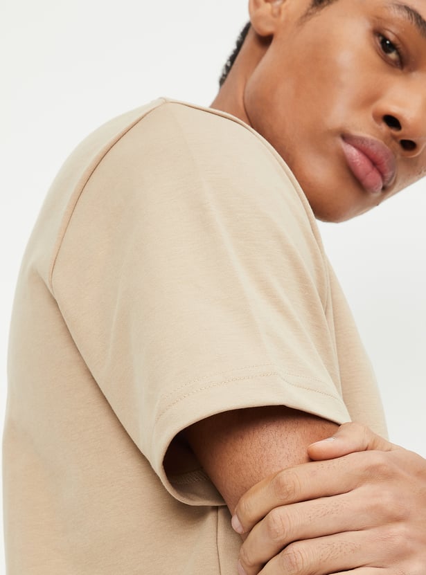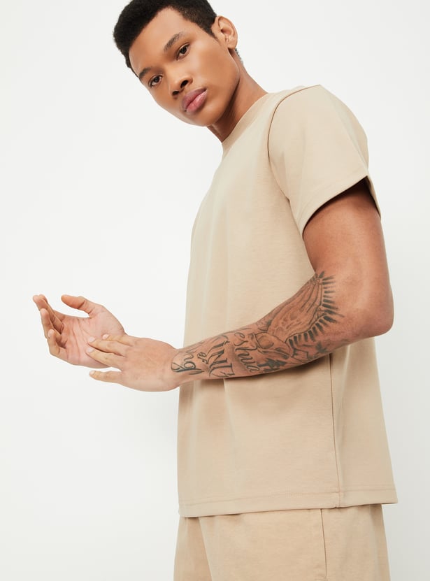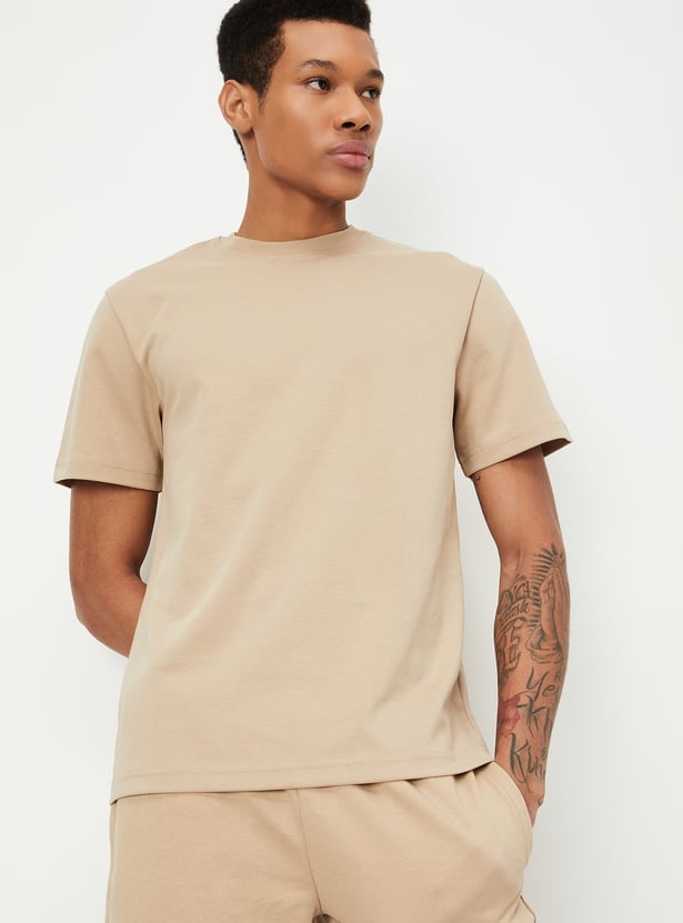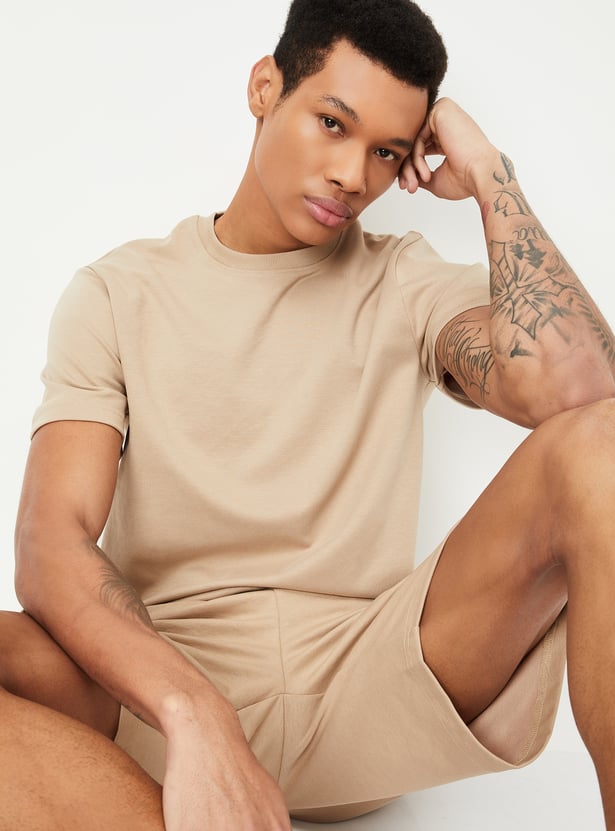 Unwind in fashion with this lounge T-shirt, boasting a sleek solid surface. Crafted with a comfortable crew neckline and short sleeves, it's the perfect choice for relaxed days.