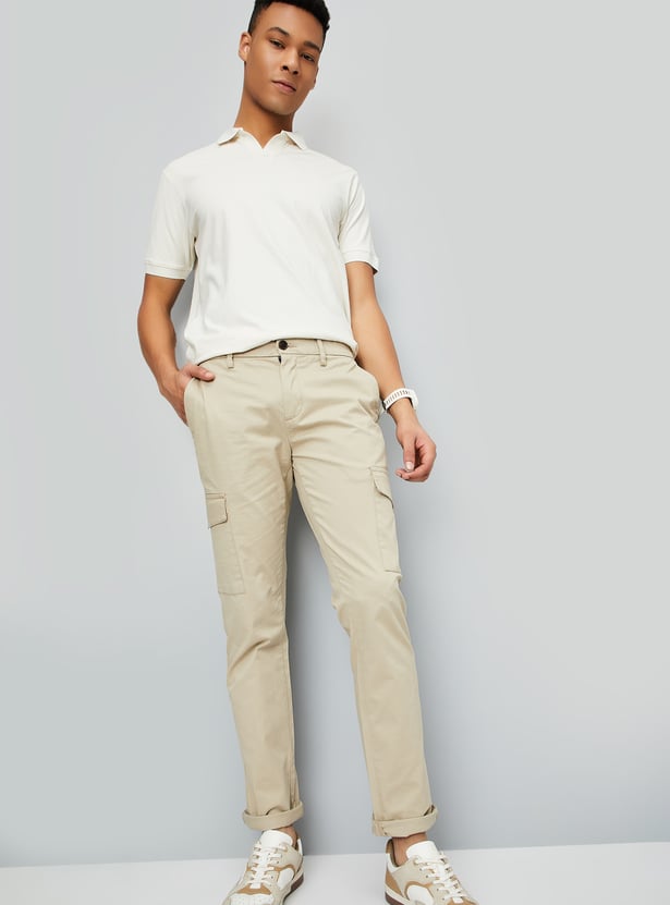 Men Solid Slim Fit Cargo Trousers