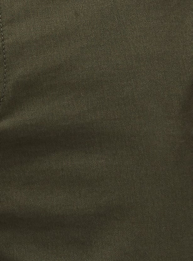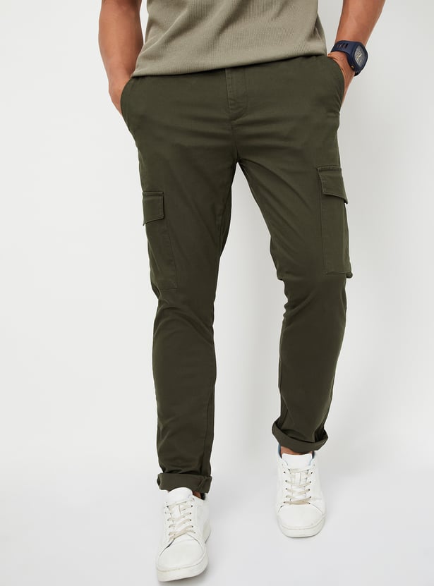 These slim-fit cargo trousers are a stylish upgrade to your casual wardrobe. With a solid design, button closure, and functional cargo pockets, they offer both practicality and a sharp look.