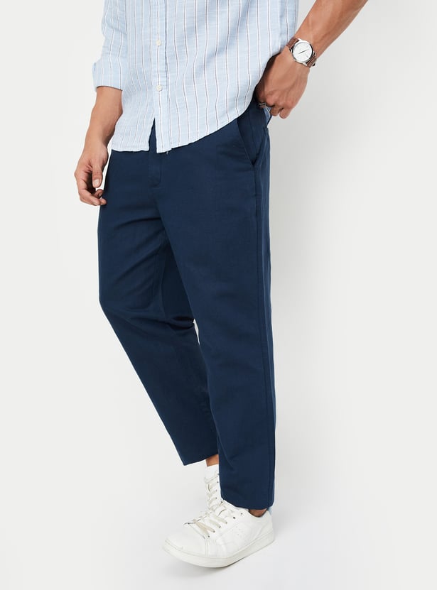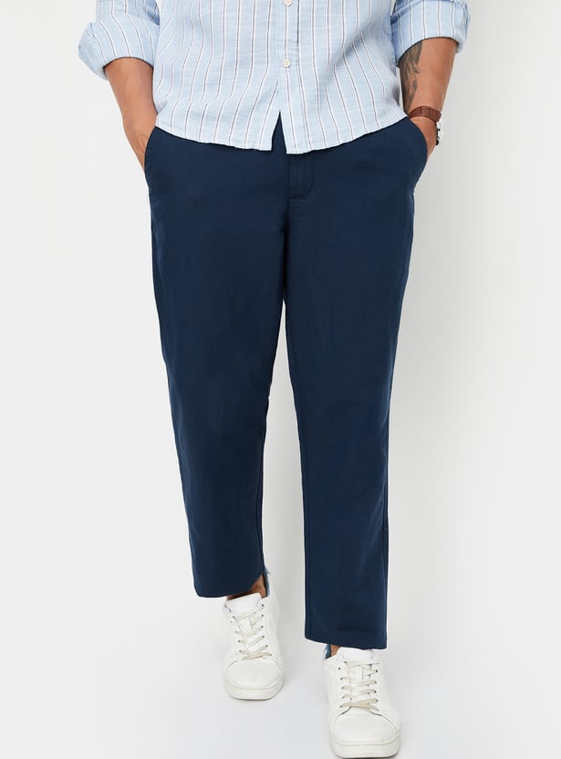 These solid slim-fit trousers feature 4 pockets, a button closure, and belt loops for a tailored, polished look. Perfect for both professional and casual settings, they offer comfort and style in one versatile piece.
