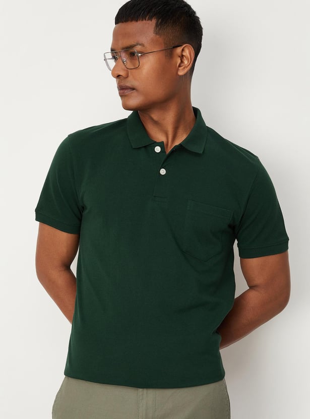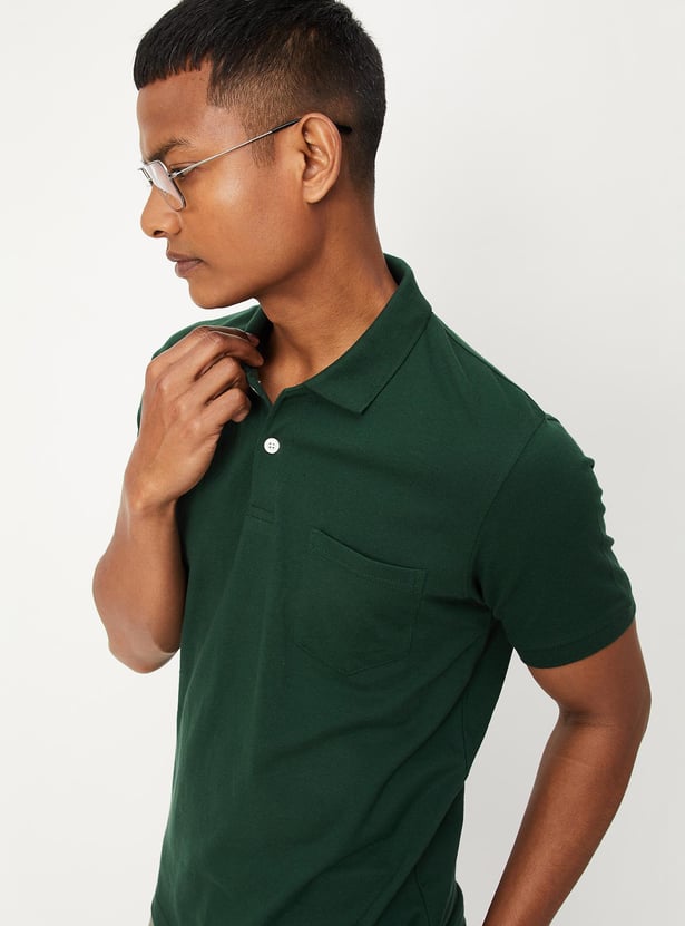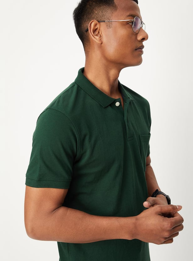 Men Solid Slim Fit Polo T-shirt With Pocket