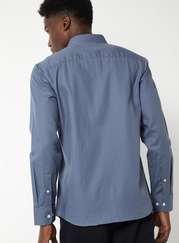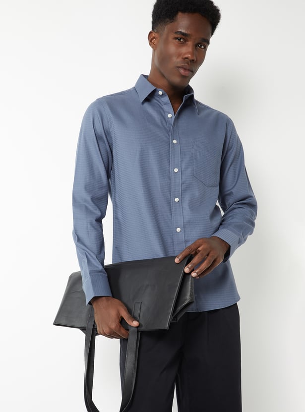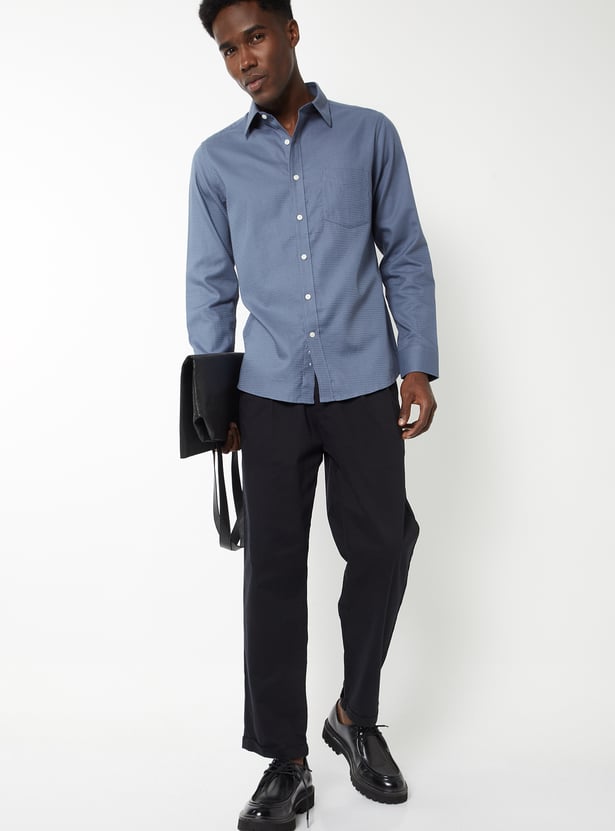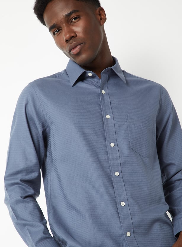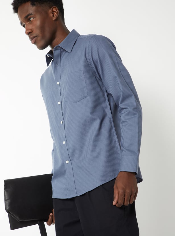 A classic solid shirt featuring a smart spread collar and a neat button placket. Designed with full sleeves and button cuffs, it also includes a practical patch pocket for everyday ease.