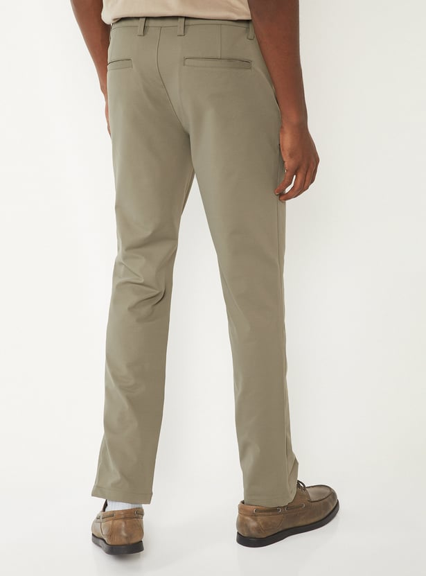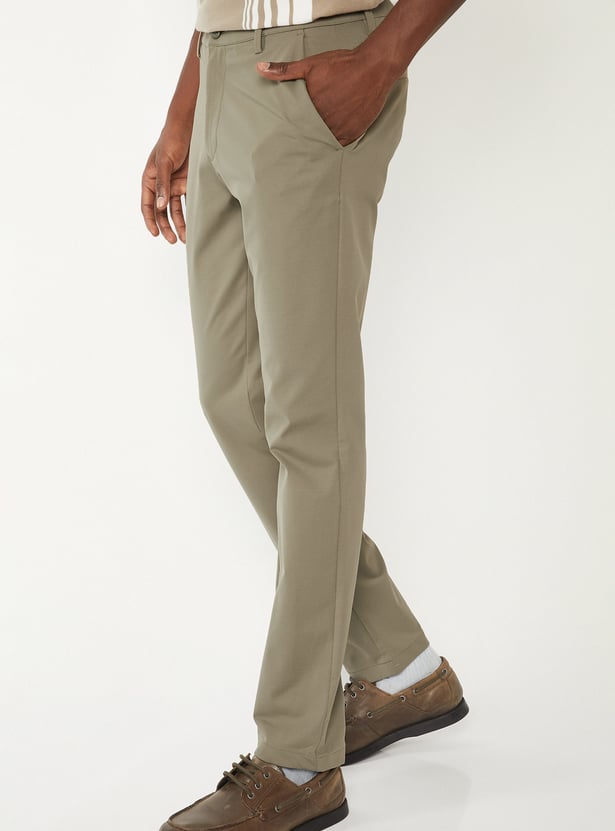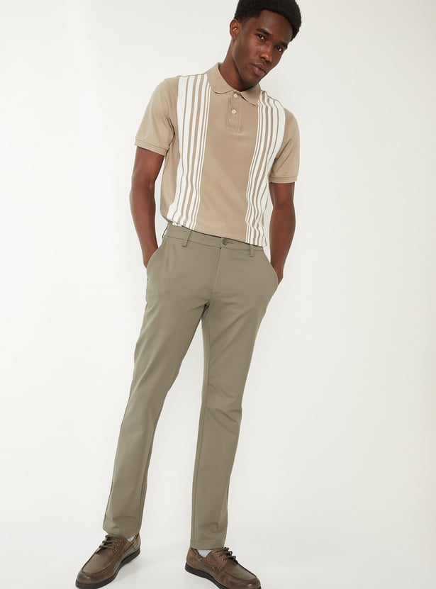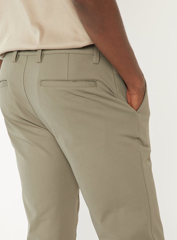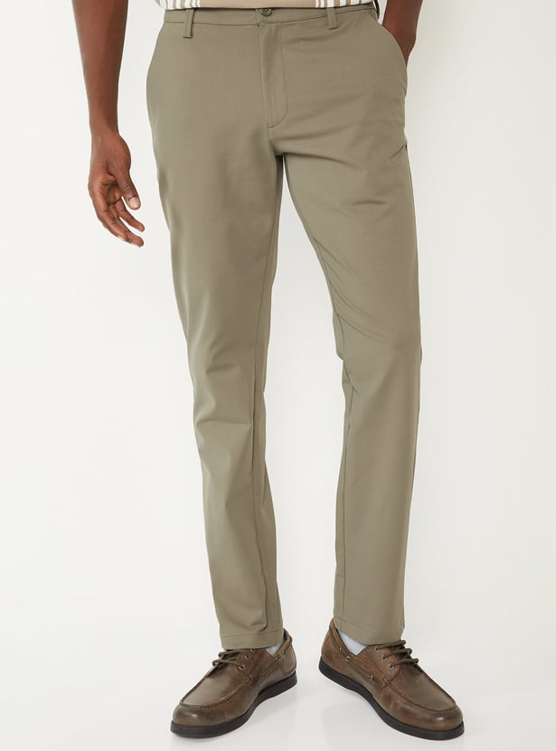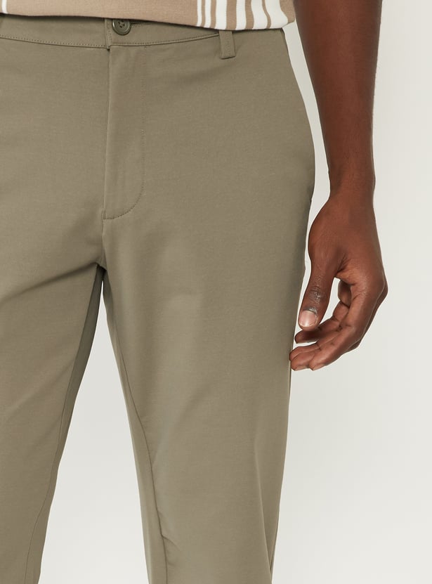 Keep it sleek and versatile with these solid slim fit trousers. Designed with a mid-rise silhouette, they feature a button closure, belt loops, and functional pockets for everyday practicality. The slim fit cut ensures a sharp, tailored look that transitions seamlessly from work to casual outings.