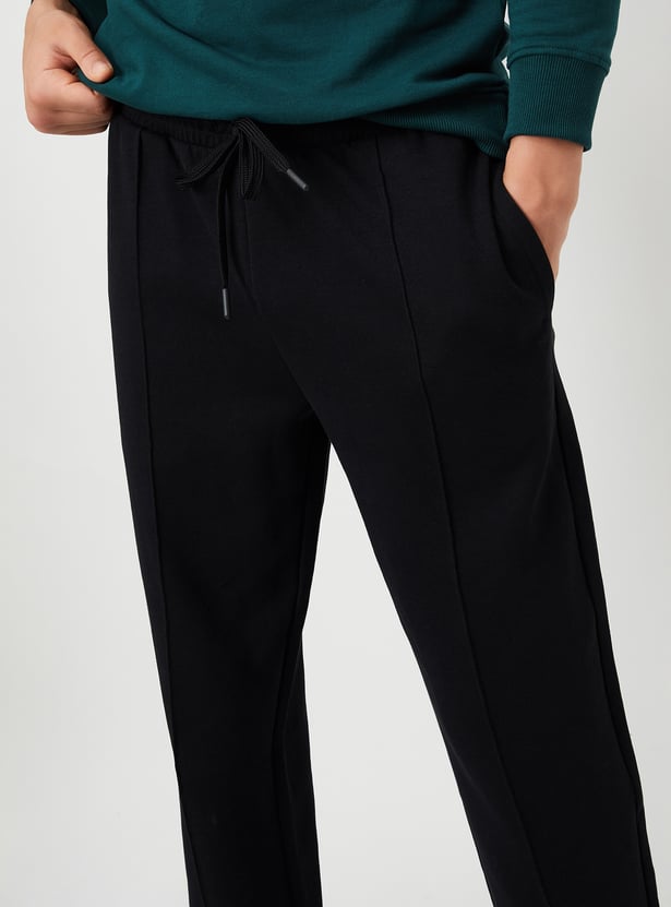 Stay comfortable and stylish in these solid track pants, designed with a drawstring closure for an adjustable fit. Featuring insert pockets for added convenience, they’re perfect for both lounging and casual outings.