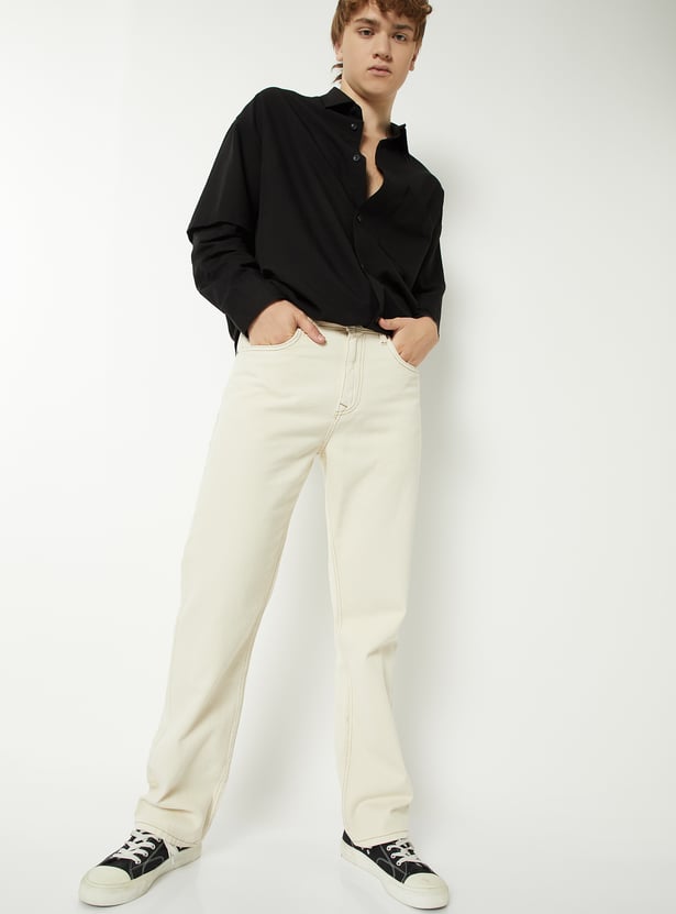 These men’s straight-fit jeans have a mid-rise waist, regular length, and are a timeless wardrobe essential. Designed with a classic side and back pockets, belt loops, button closure, and clean finish with no fade or distress, they offer a classic look and comfortable fit.