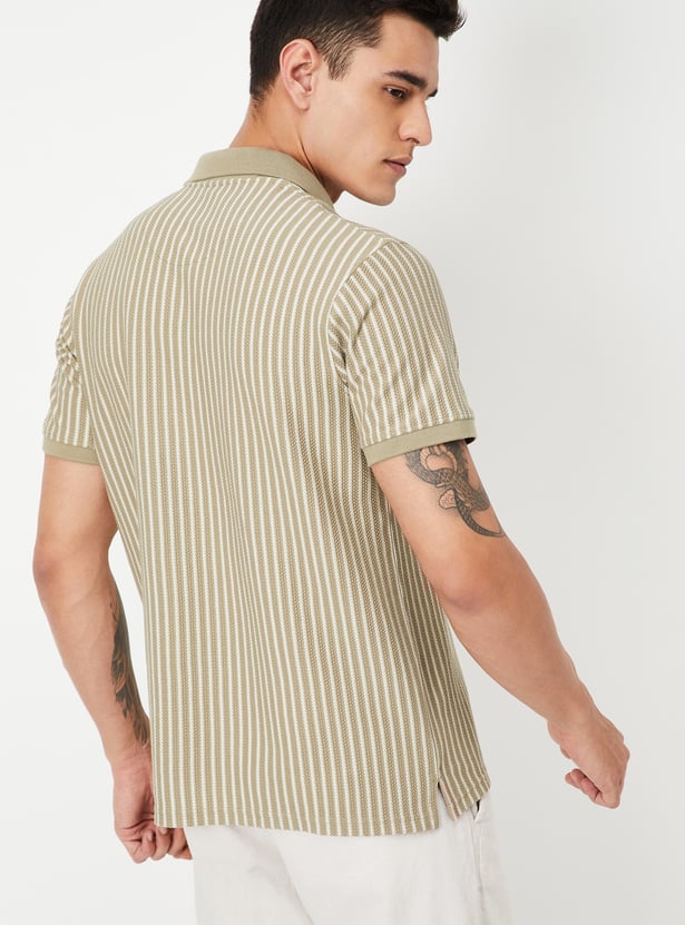 Add a sporty touch to your wardrobe with this striped polo t-shirt. Featuring a classic johnny collar and half sleeves, it’s a stylish and comfortable option for casual days or a laid-back outing.