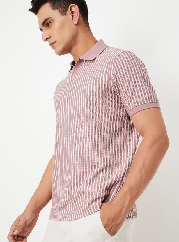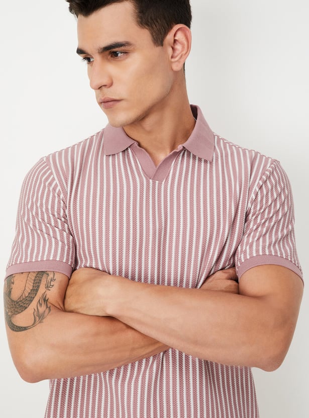 Add a sporty touch to your wardrobe with this striped polo t-shirt. Featuring a classic johnny collar and half sleeves, it’s a stylish and comfortable option for casual days or a laid-back outing.