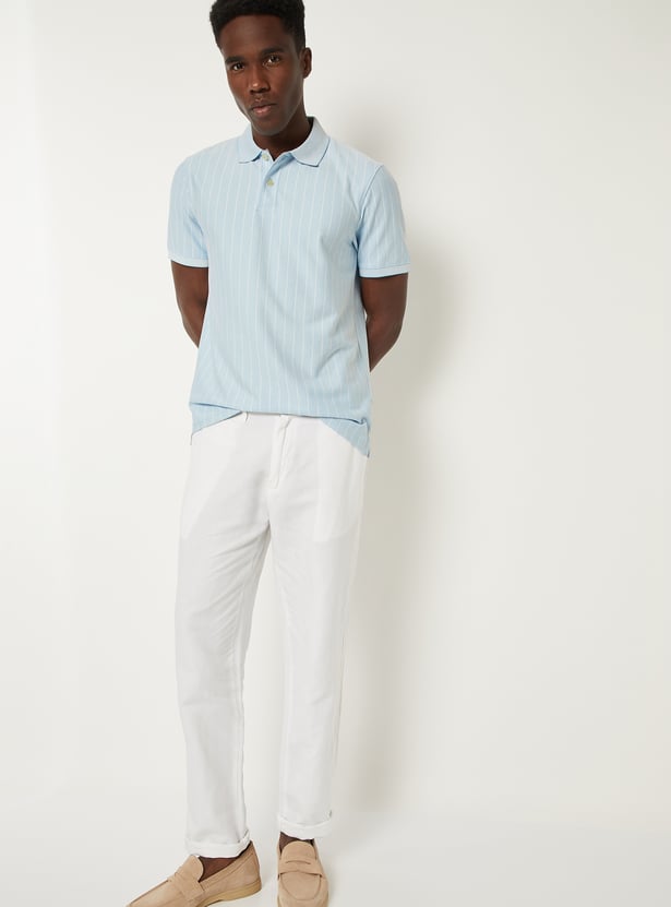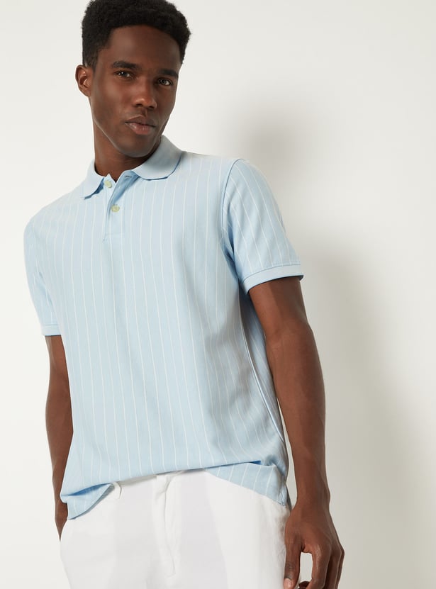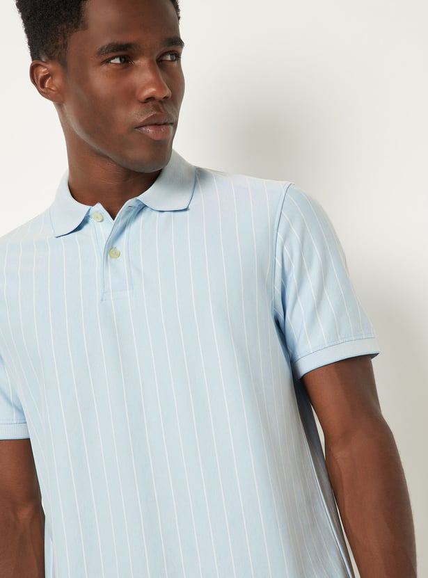 Upgrade your casual wardrobe with this striped polo t-shirt, featuring a classic polo collar and half sleeves for a timeless look. The button placket adds a refined touch, making it perfect for both relaxed and smart-casual occasions.