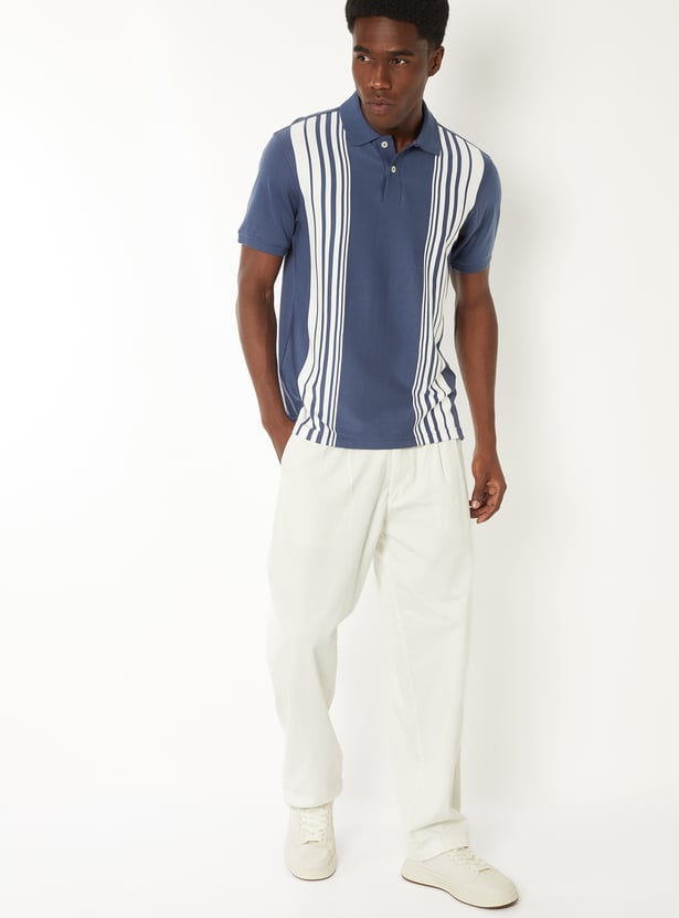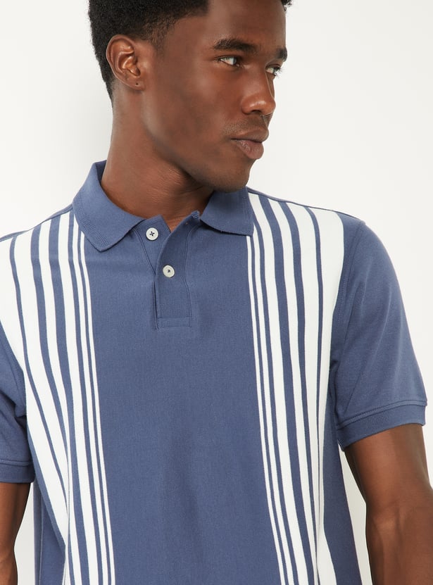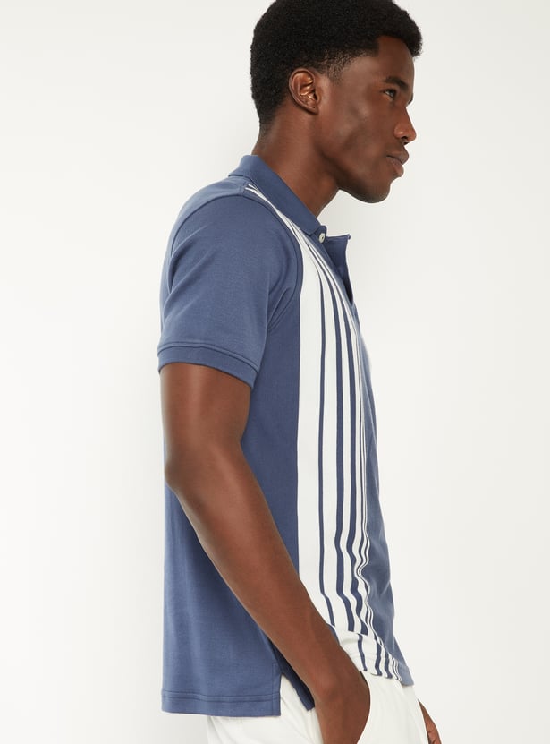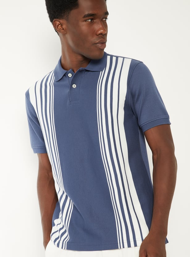 Keep it sporty yet stylish with this striped polo t-shirt. Featuring a classic polo collar, half button placket, and half sleeves, it offers a timeless look with a casual edge. The striped design adds a dynamic touch, making it versatile for both relaxed and smart-casual outfits.