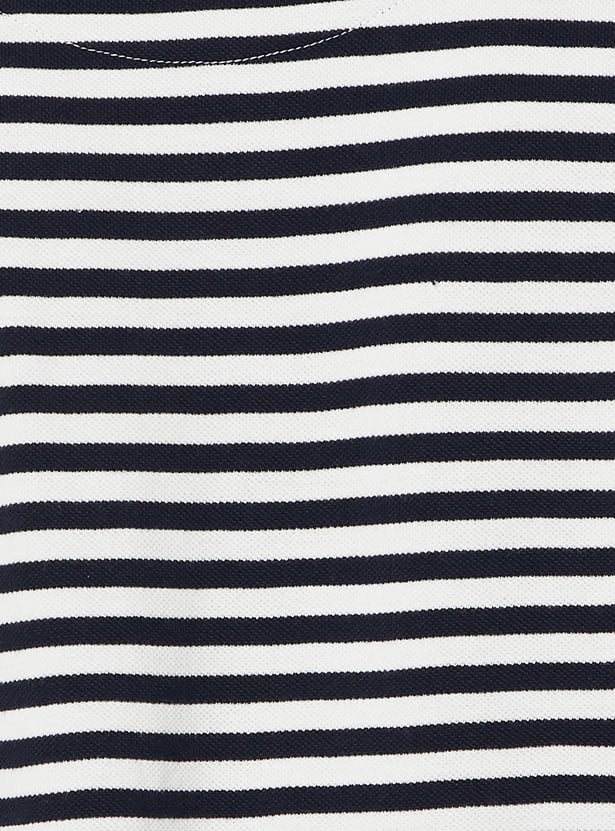 Keep it classic with this striped regular fit polo T-shirt, designed with a timeless polo collar, short button placket, and comfortable half sleeves. The regular fit offers ease of movement, while the stripes add a touch of sporty style.