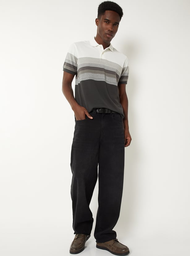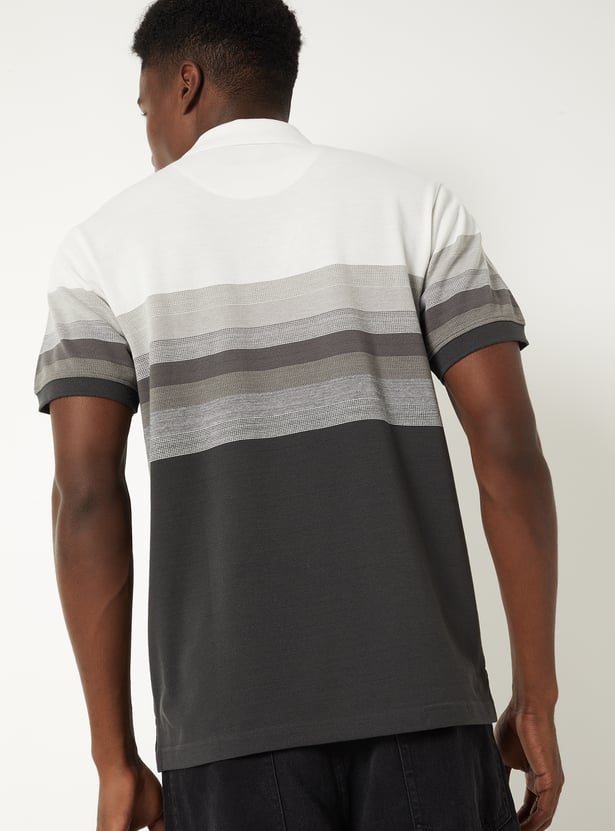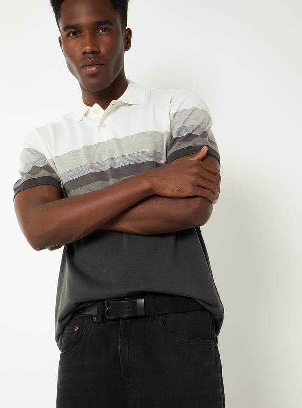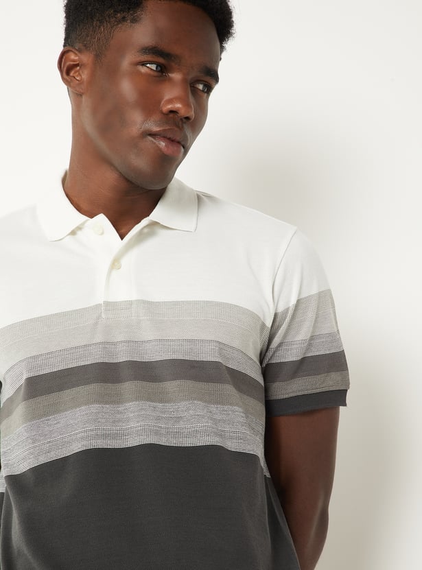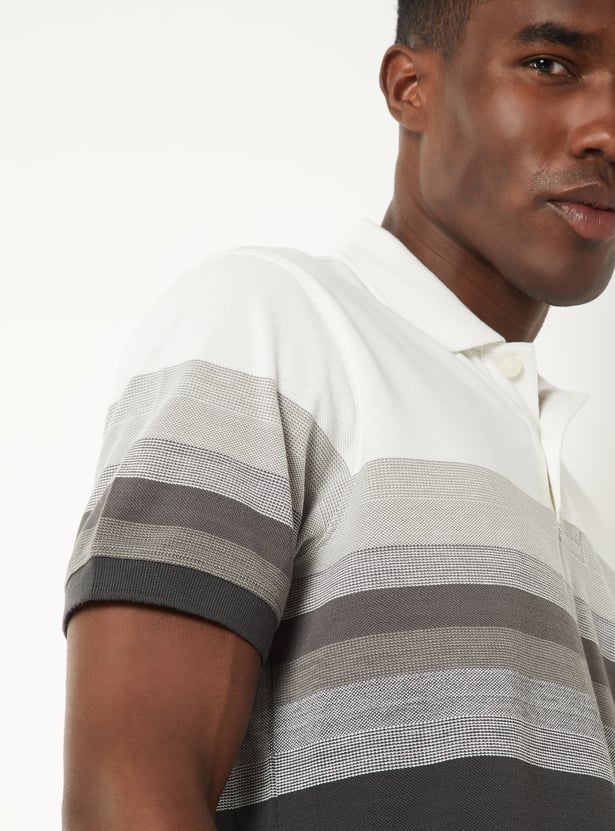 Get your casual collection to the next level with this polo. It features a striped surface, a polo collar, half sleeves, and a button placket.