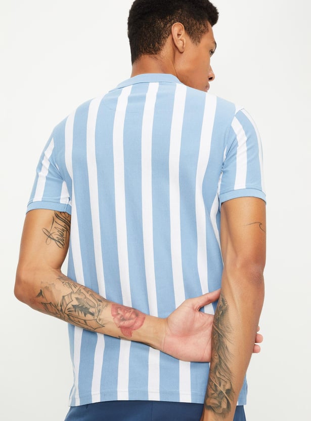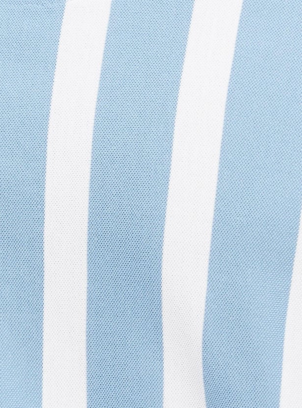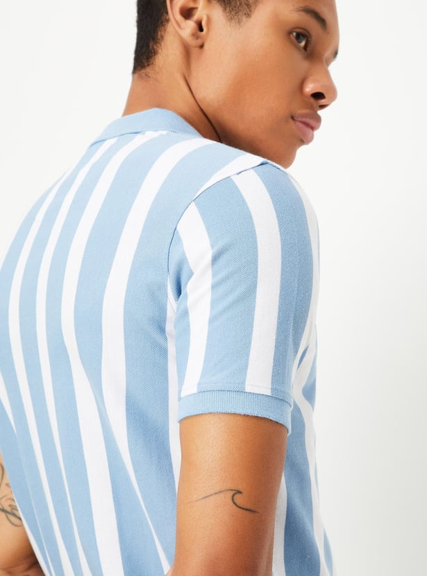 This striped polo t-shirt with short sleeves, a polo collar, and a button placket adds a fashionable flair to your casual outfit.