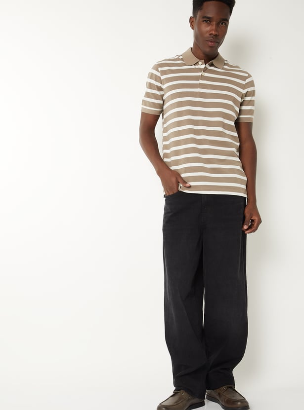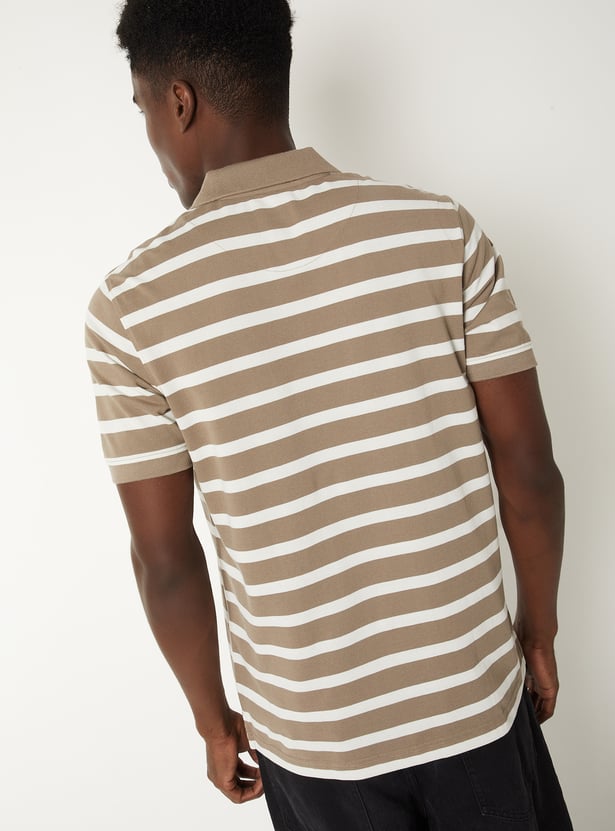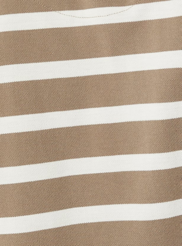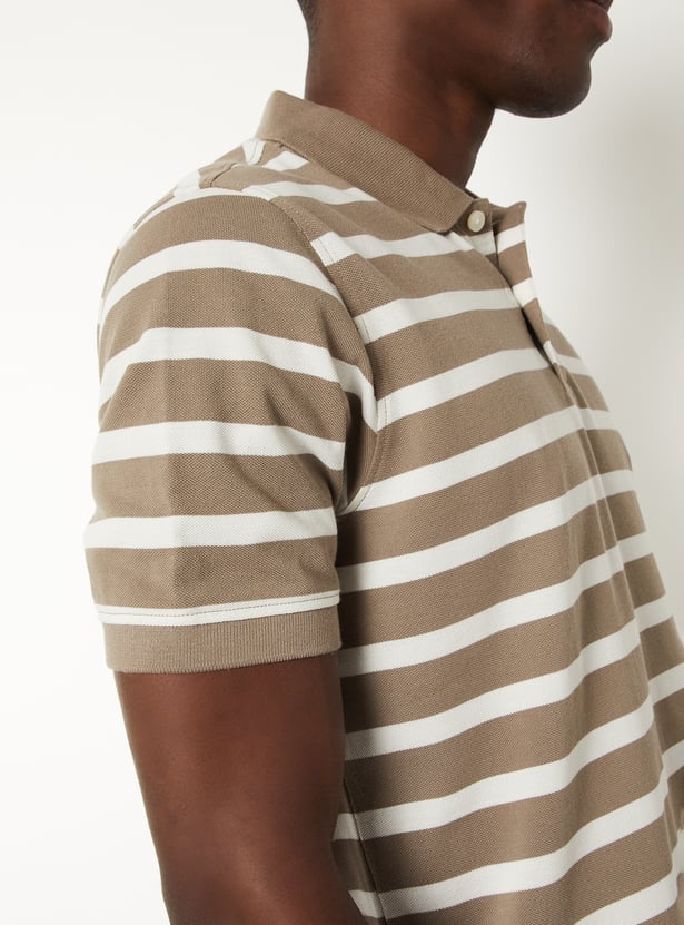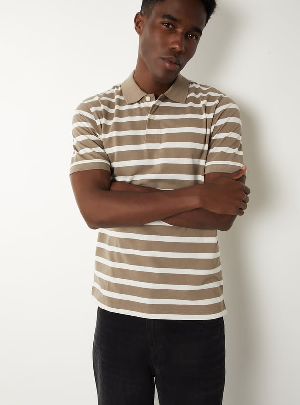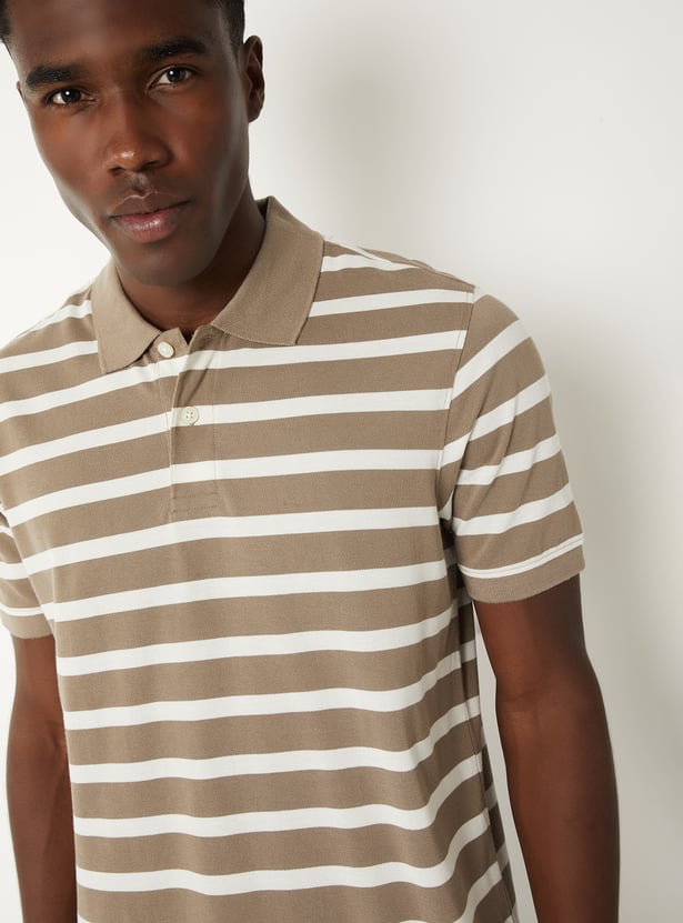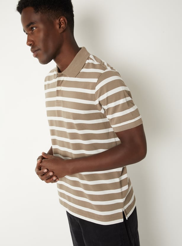 Get your casual collection to the next level with this polo. It features a striped surface, a polo collar, half sleeves, and a button placket.