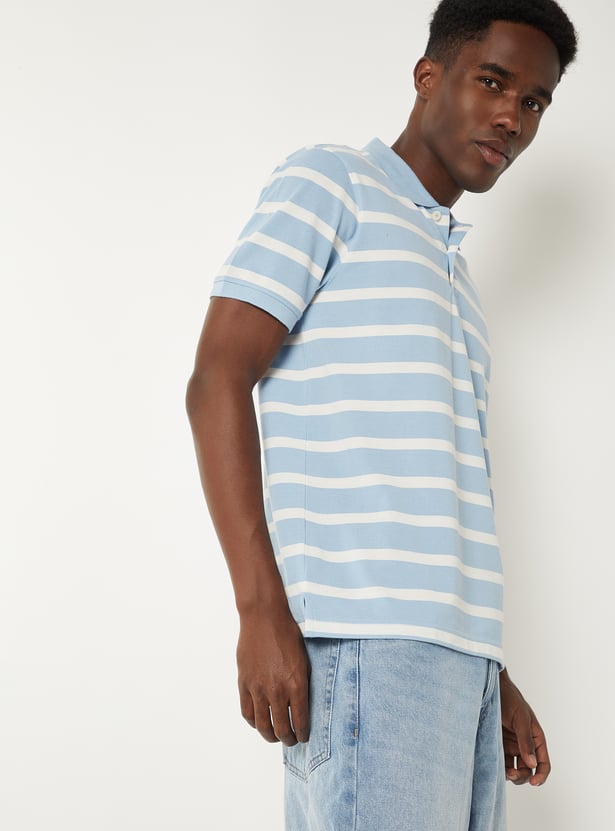 Get your casual collection to the next level with this polo. It features a striped surface, a polo collar, half sleeves, and a button placket.