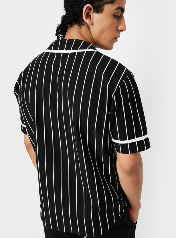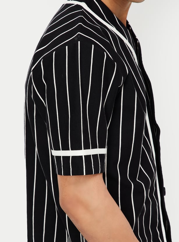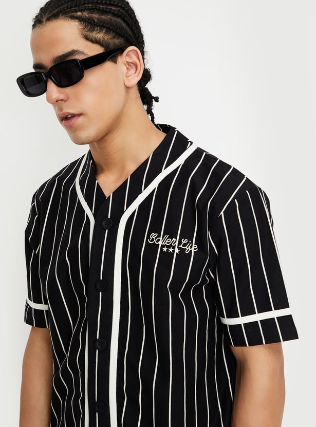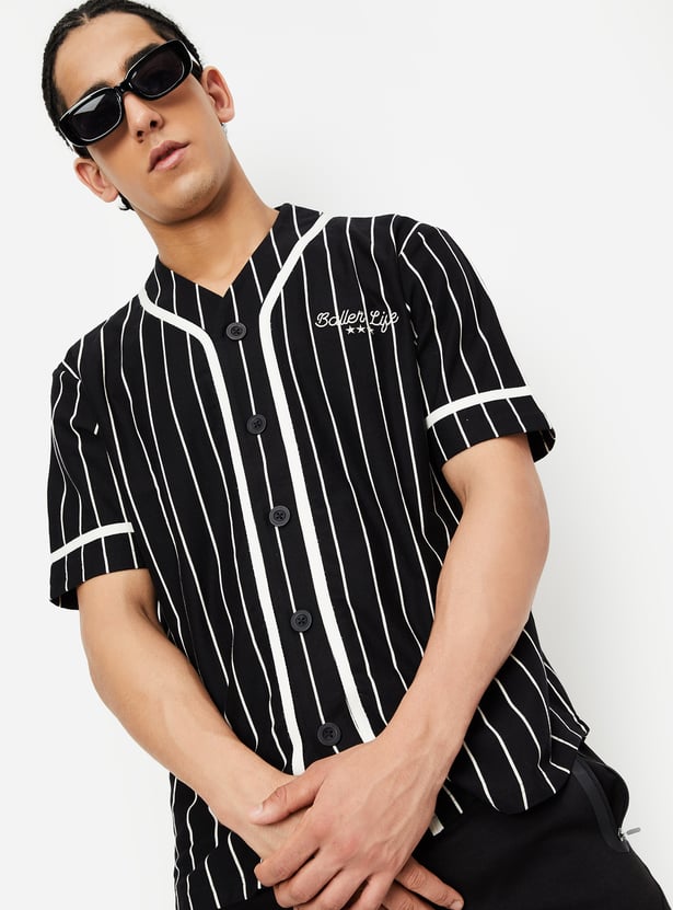 Upgrade your casual collection with this striped T-shirt. Featuring a V-neck with a buttoned front and half sleeves, it combines classic patterns with a modern touch.