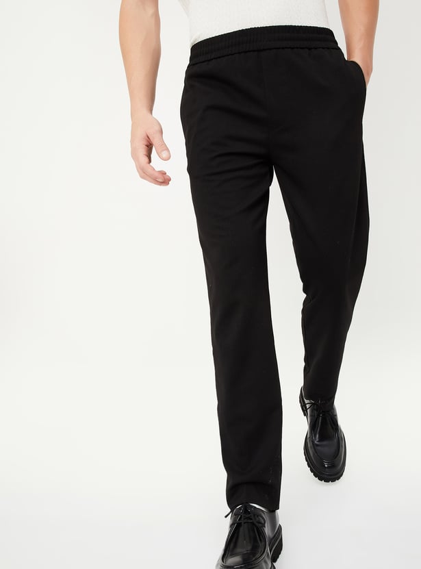 Men Textured Slim Fit Formal Trousers