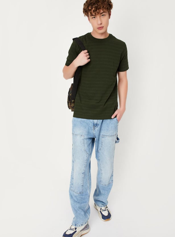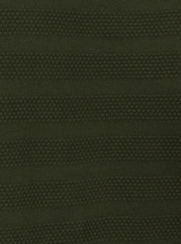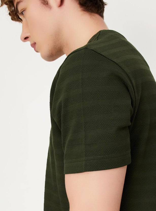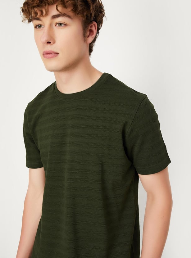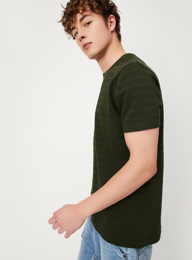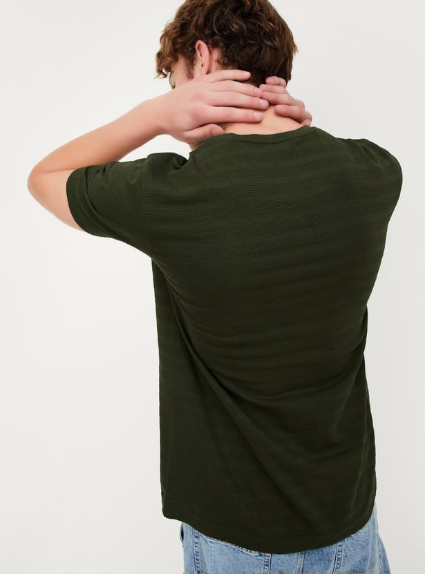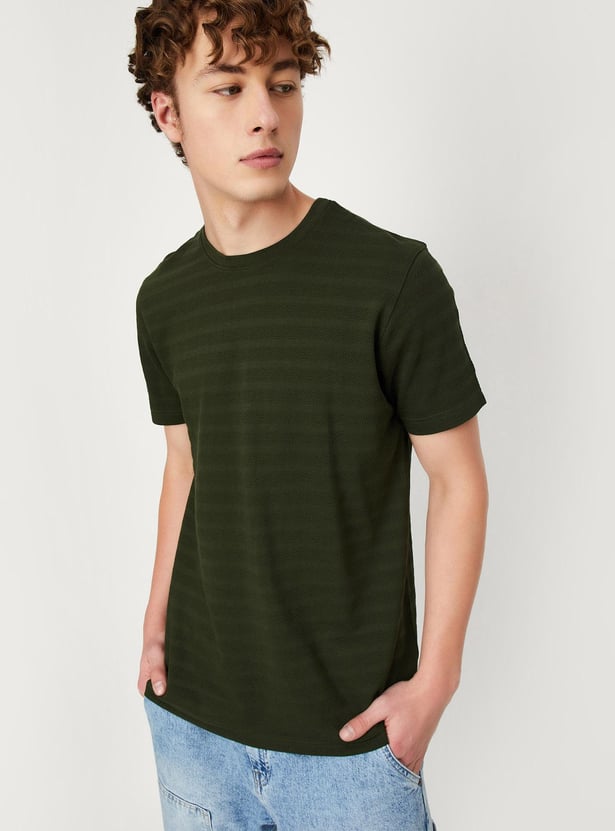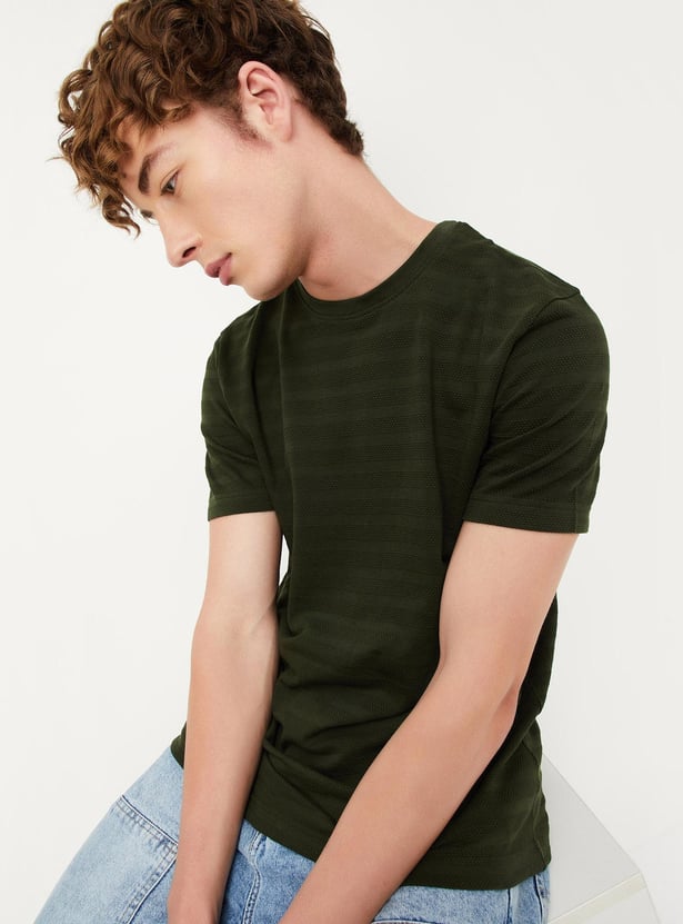 This textured t-shirt with half sleeves and a crew neck, gives trendy style to simply boost your casual look. Style it with a pair of jeans and sneakers for a stylish look.