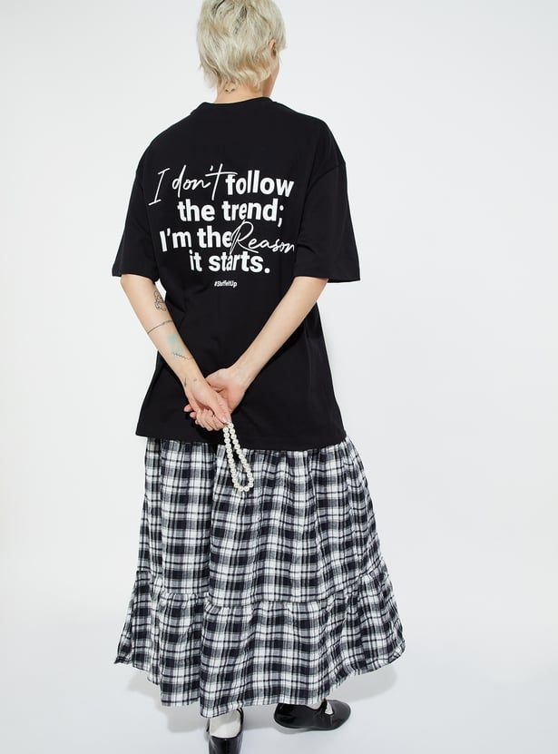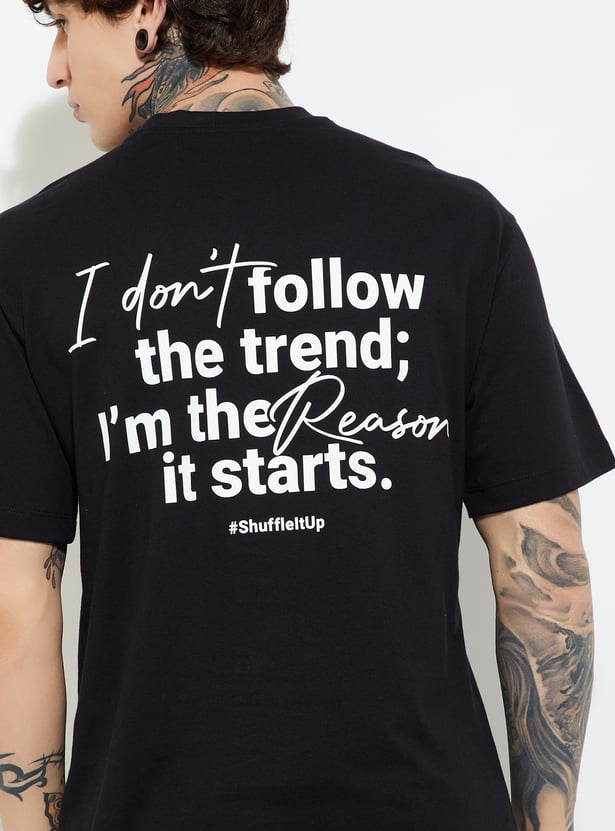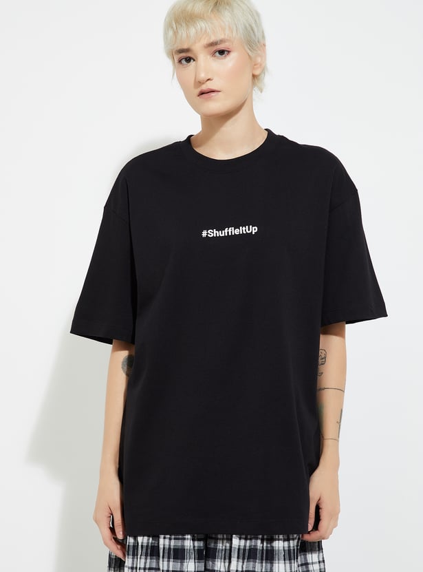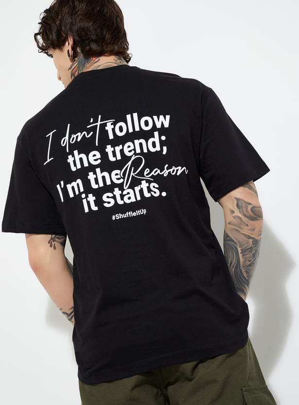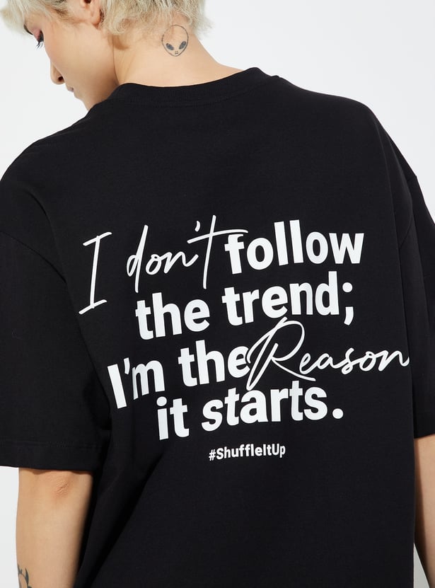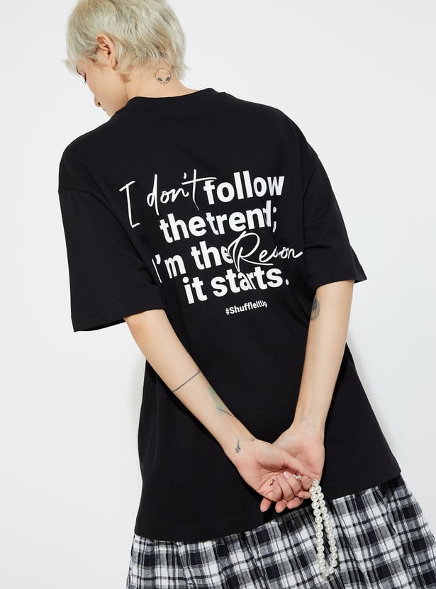 Add a pop of personality to your everyday style with this back print oversized T-shirt, featuring a classic crew neck and half sleeves. Comfortable and versatile, it's perfect for casual wear.