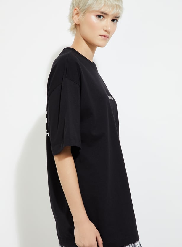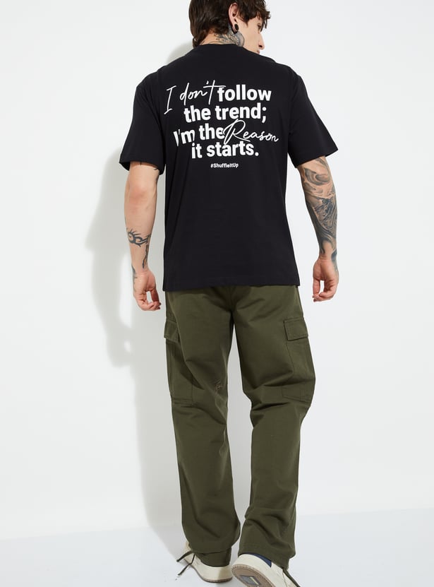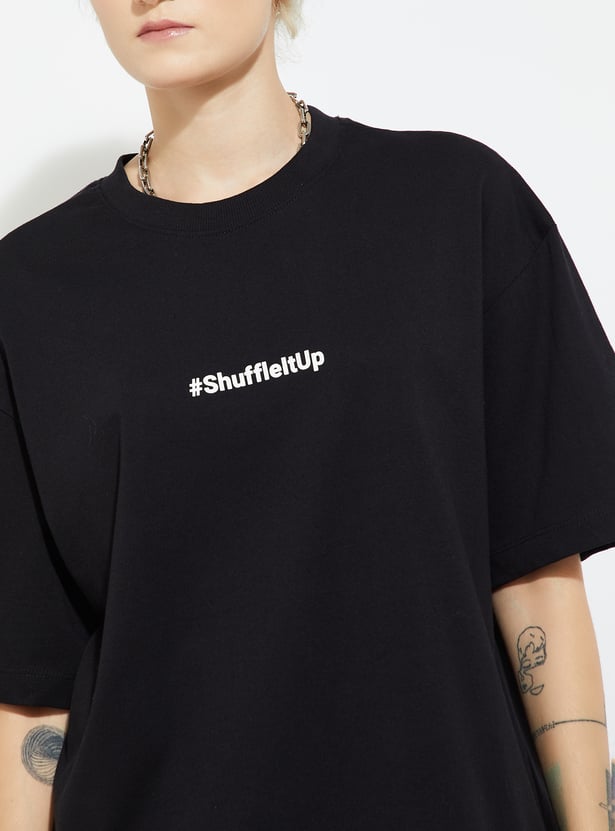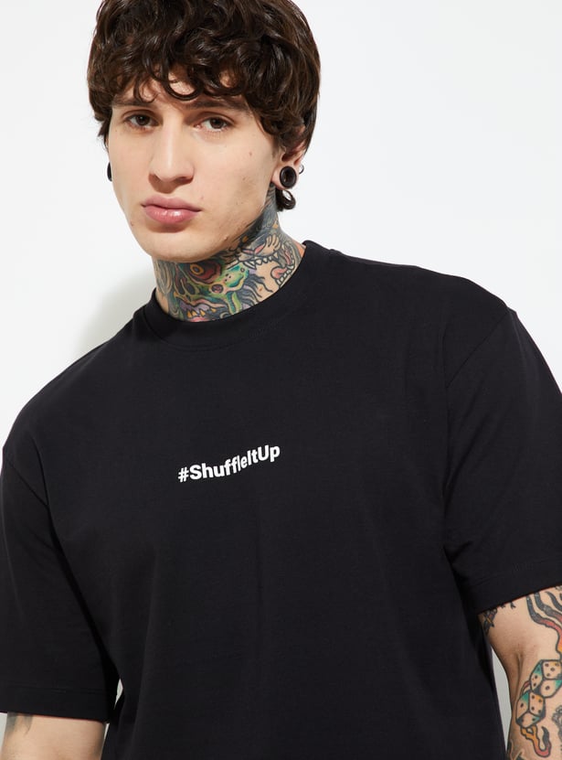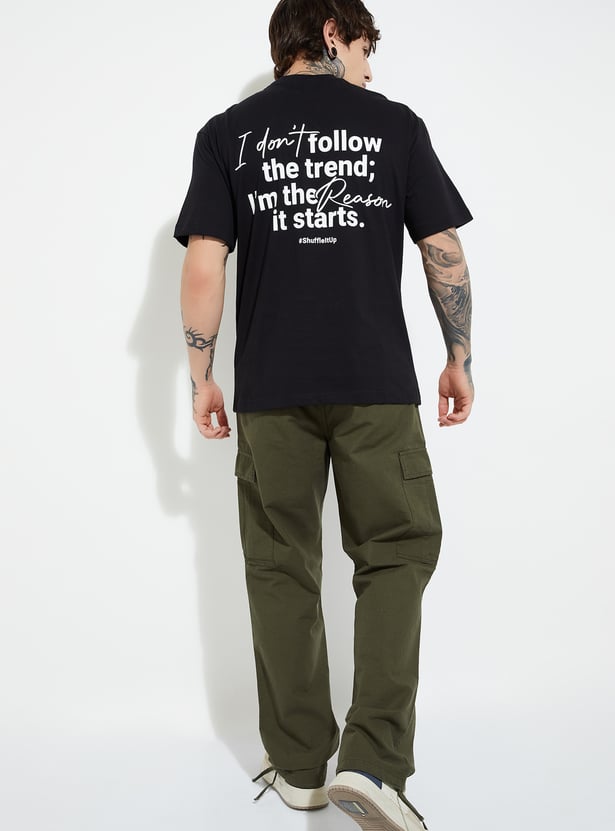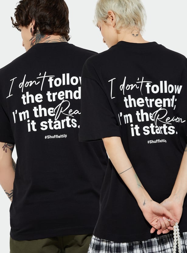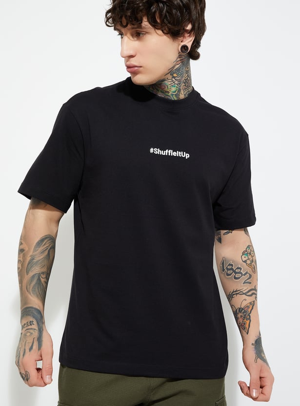 Add a pop of personality to your everyday style with this back print oversized T-shirt, featuring a classic crew neck and half sleeves. Comfortable and versatile, it's perfect for casual wear.