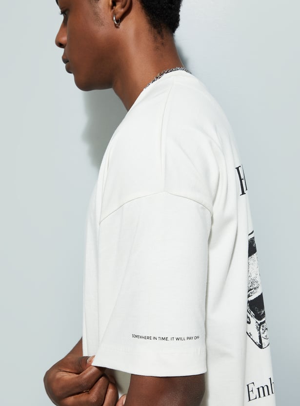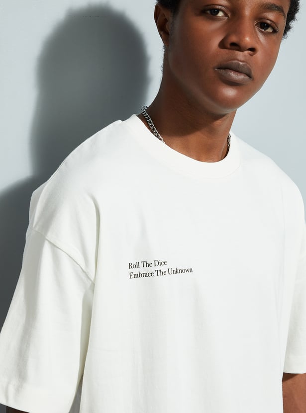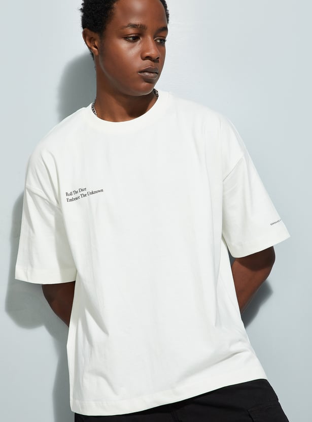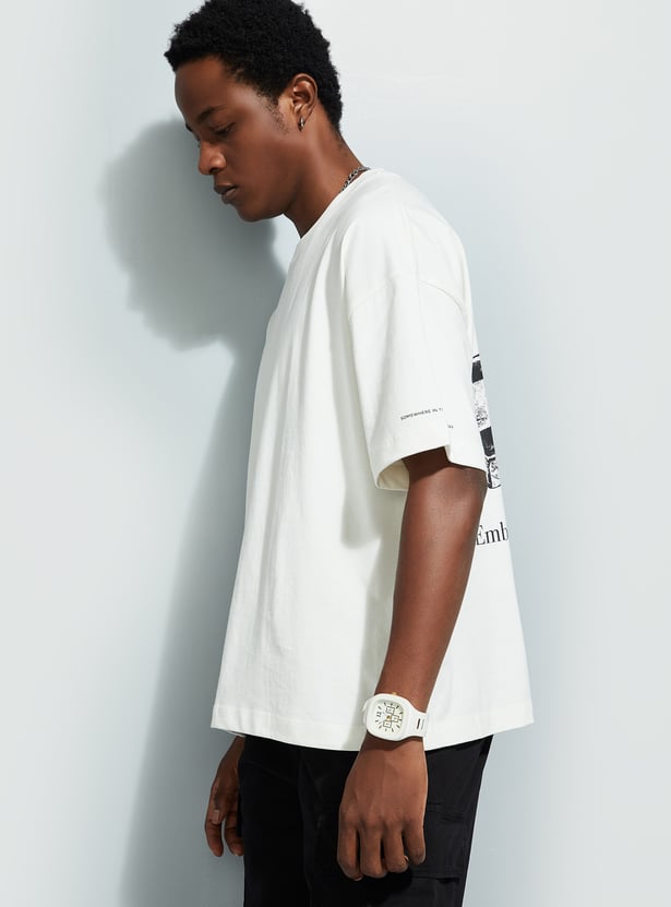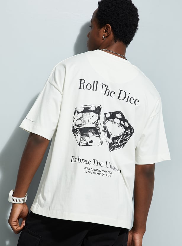Elevate your street style game with this T-shirt, injecting a dose of urban flair into your wardrobe. Boasting a bold graphic print at the back, a classic crew neck, short sleeves, and a boxy fit profile for that roomy comfort.