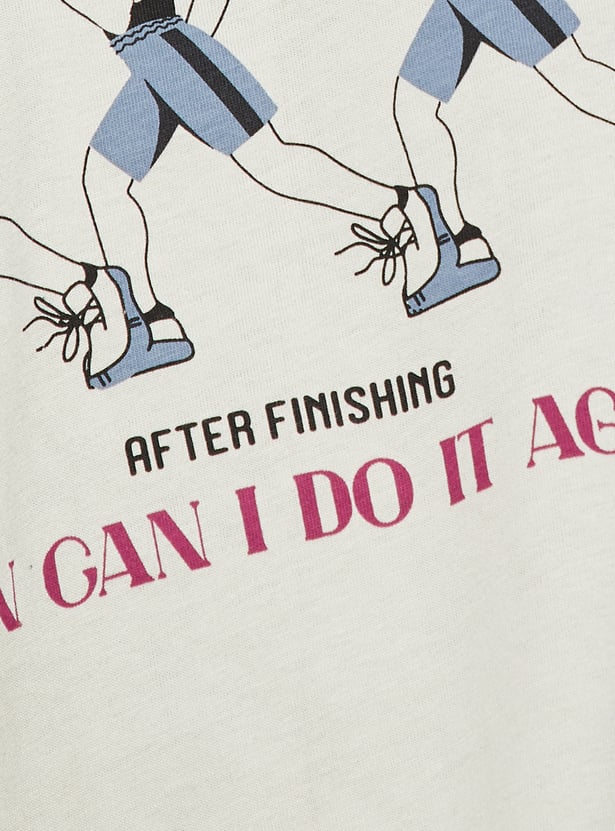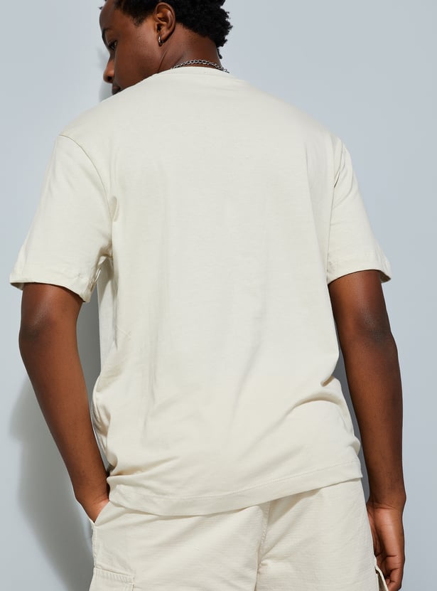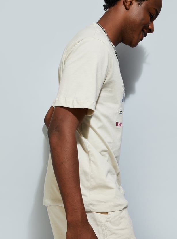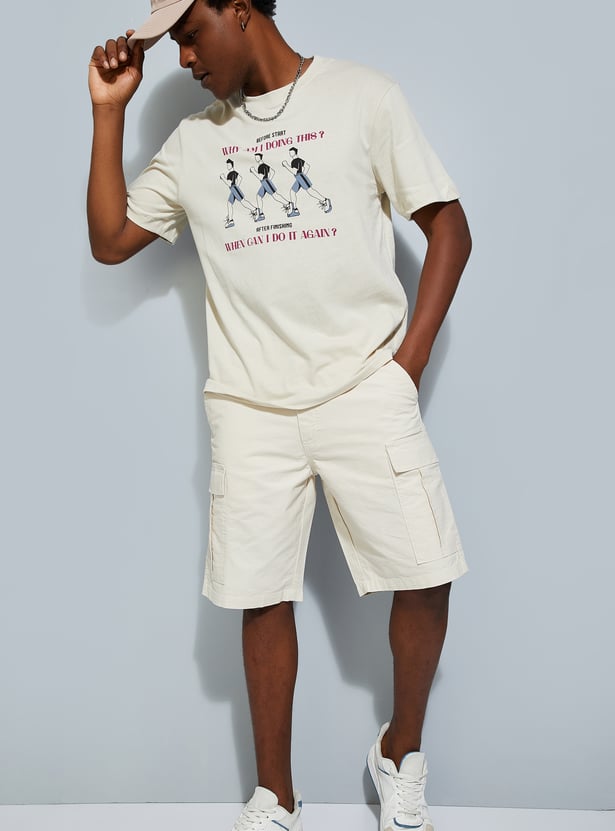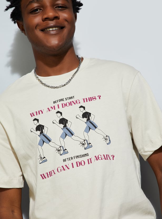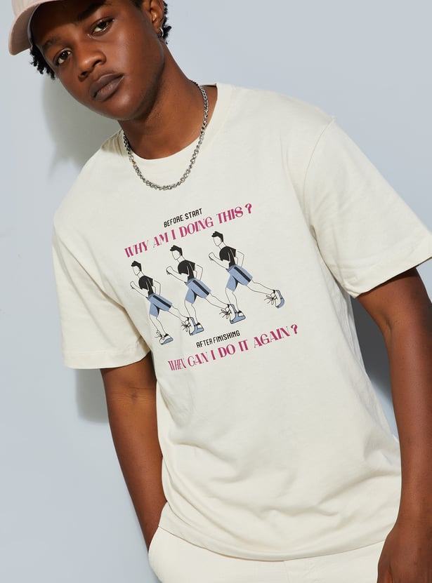 A must-have for your casual wardrobe, this T-shirt features a striking graphic print on the chest. Designed with a crew neck and half sleeves, it offers roomy comfort, perfect for effortless urban style.