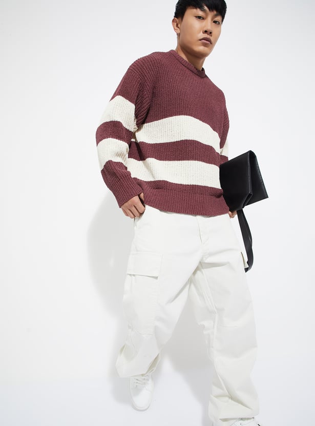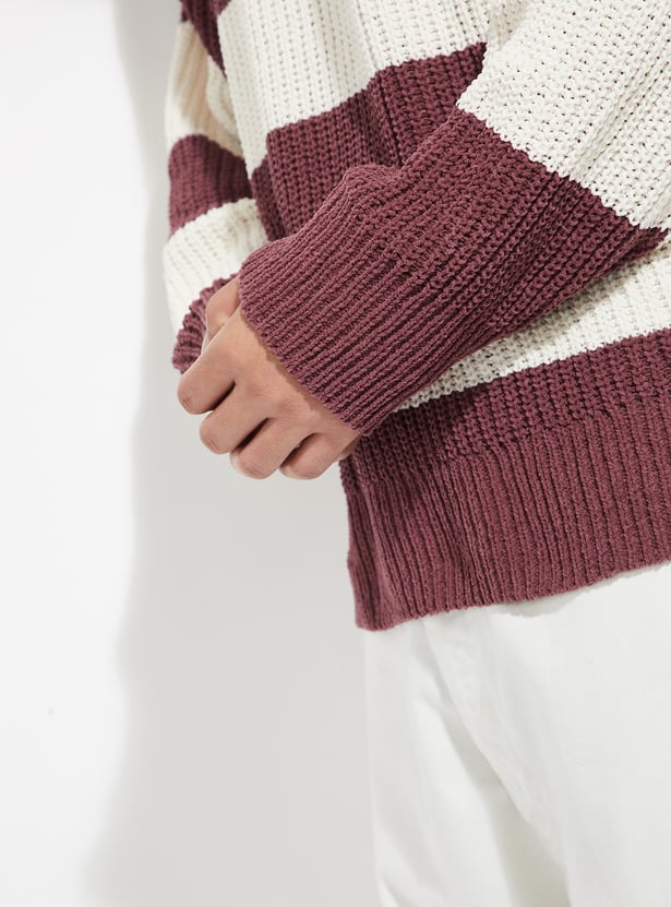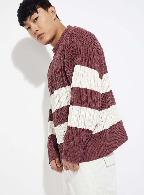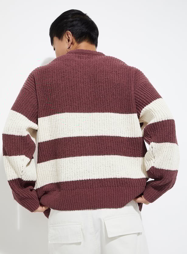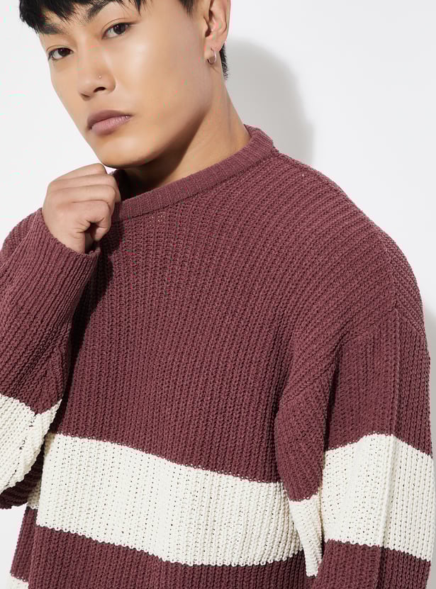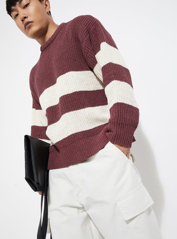 Stay classic and cosy in this knit striped sweater, featuring a crew neck, full sleeves, and a ribbed hem for a snug, comfortable fit. The timeless stripes add effortless style to your wardrobe.