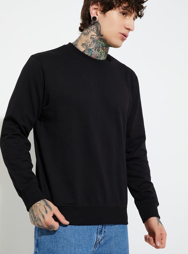 Stay comfortable and stylish in this knit sweatshirt, featuring a classic crew neck, full sleeves, and a ribbed hem for a secure fit. A versatile staple for layering on cooler days.