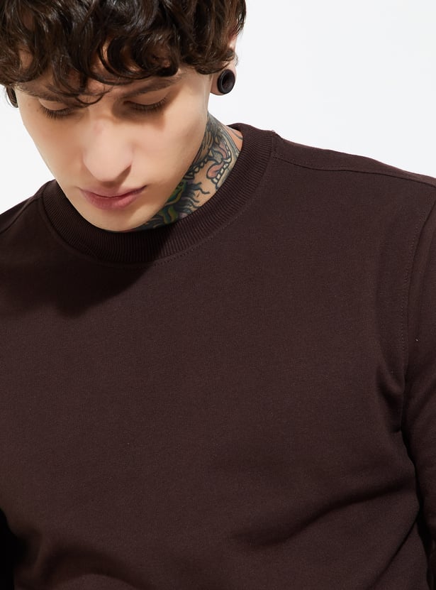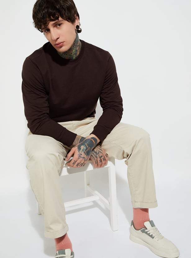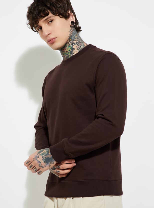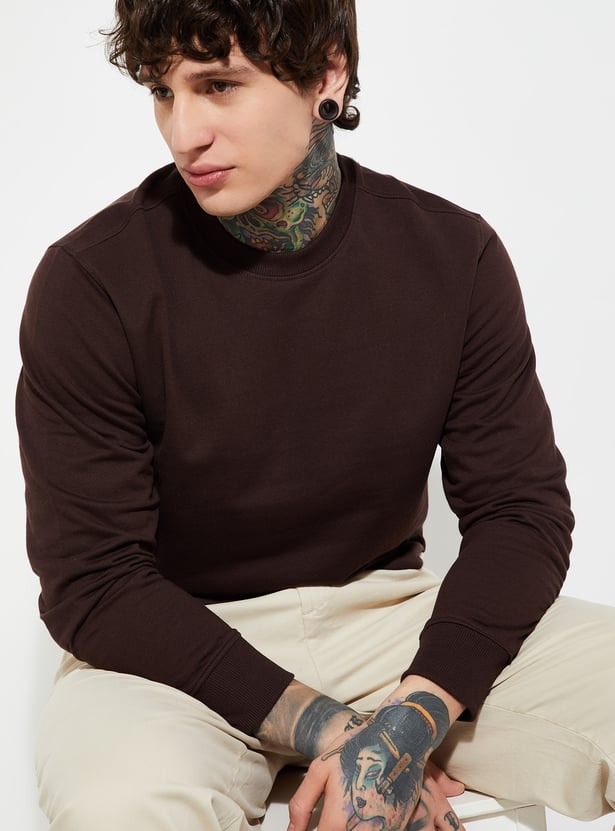This knit sweatshirt features a classic crew neck, full sleeves, and a ribbed hem for a snug, comfy fit. Crafted for everyday ease, it blends warmth with casual style.
