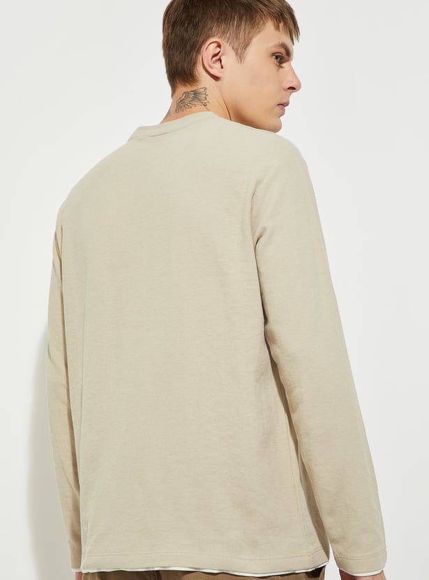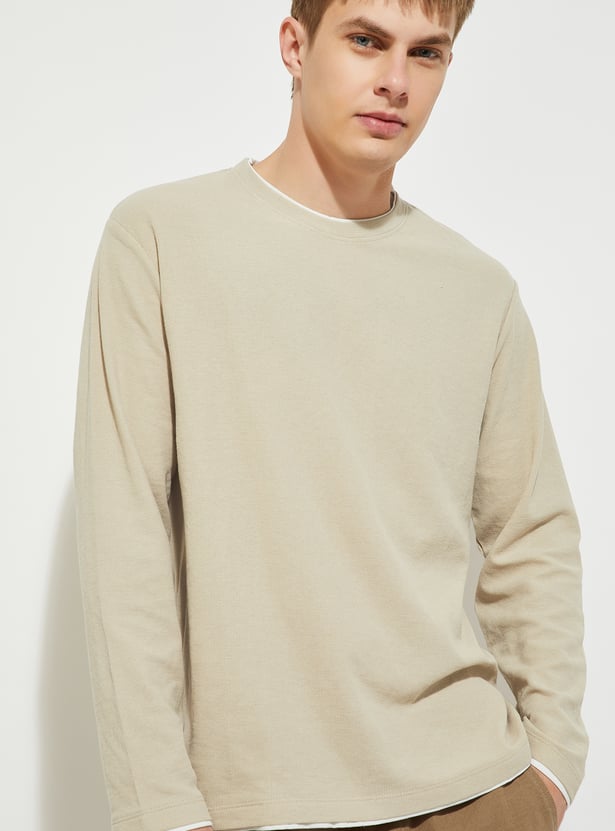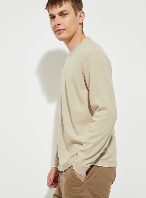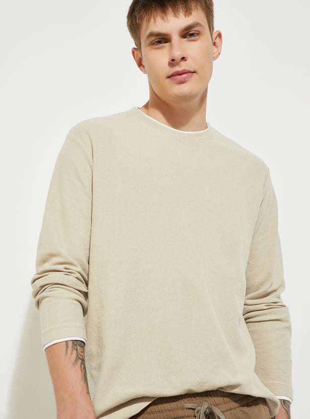 Refresh your everyday basics with this knit T-shirt crafted for effortless comfort. Designed with a classic crew neck, full sleeves, and a straight hem for a clean finish.
