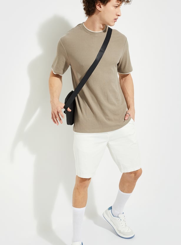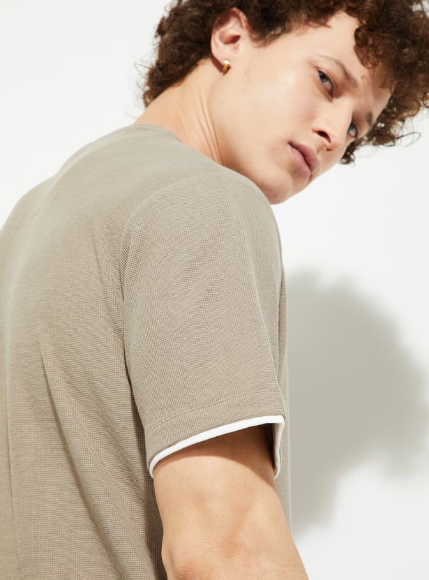 Add a stylish touch to your casual wardrobe with this textured t-shirt! Featuring a crew neck and half sleeves, it offers both comfort and a unique design that stands out from the ordinary.