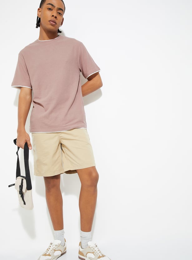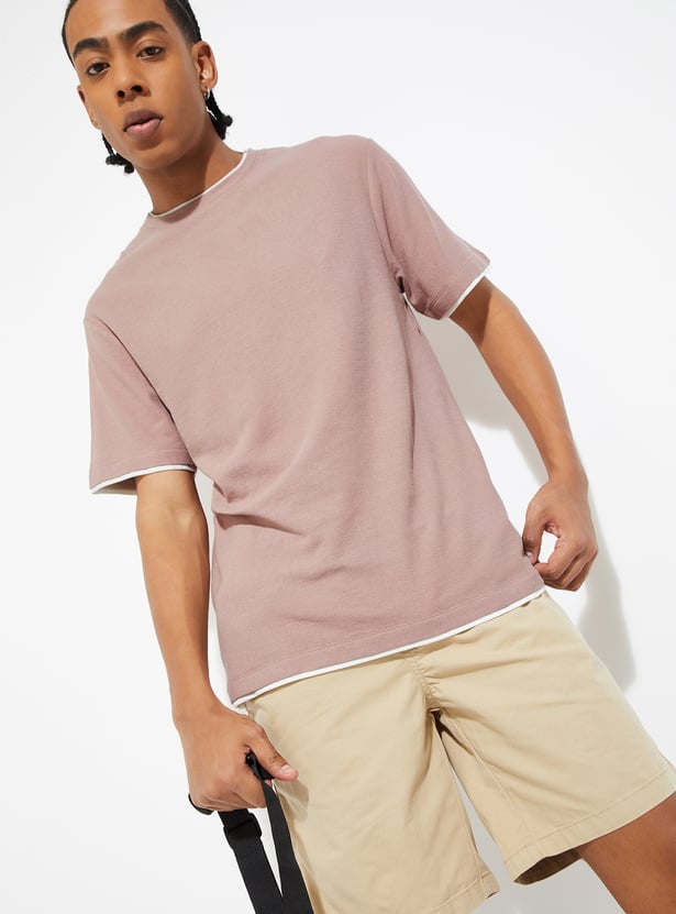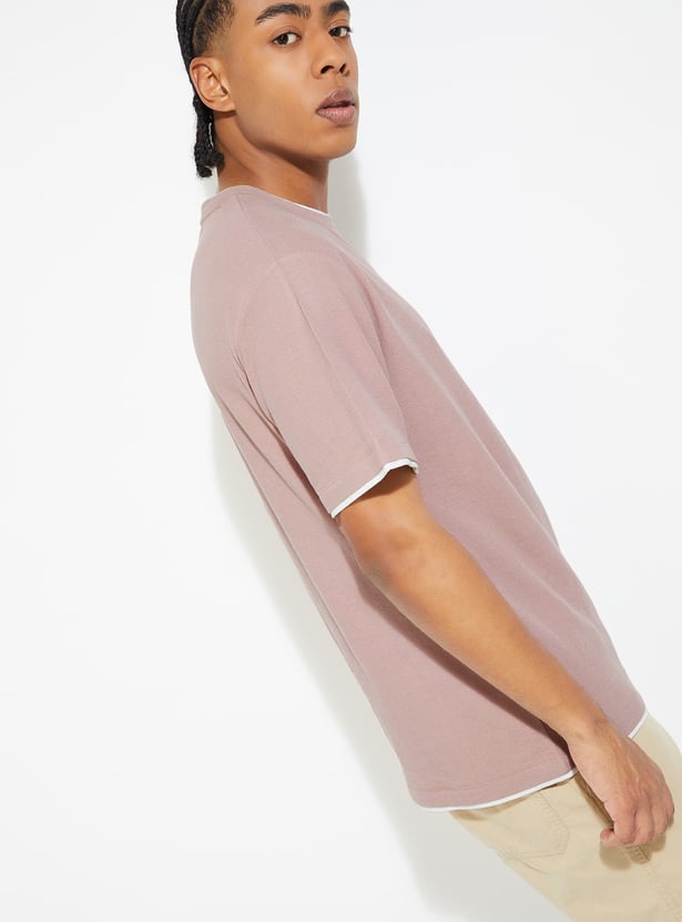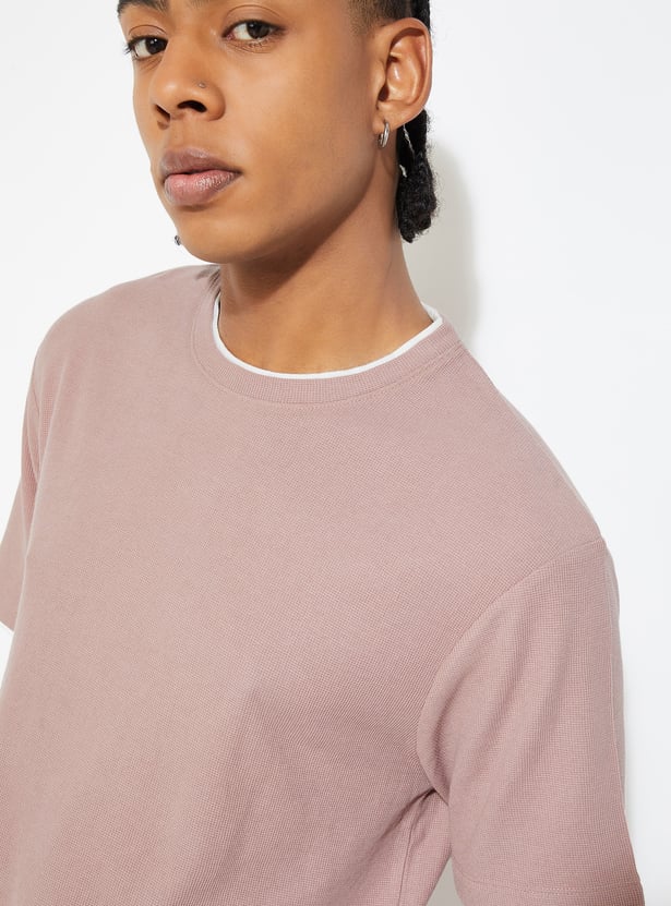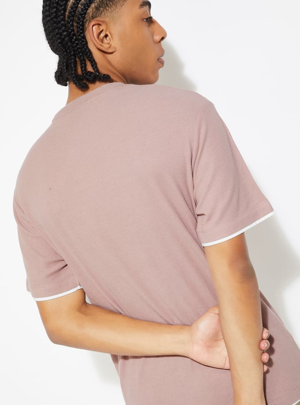 Add a stylish touch to your casual wardrobe with this textured t-shirt! Featuring a crew neck and half sleeves, it offers both comfort and a unique design that stands out from the ordinary.