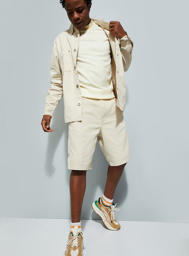Rock a laid-back look this summer with these solid-tone shorts. Featuring a belt loop waist with button closure, cross pockets, and a back patch pocket, they blend street-ready style with everyday comfort. The loose fit keeps you chill while adding an edge to your urban wardrobe.