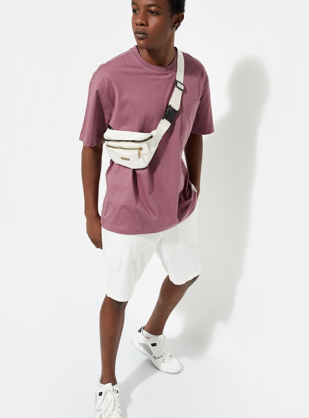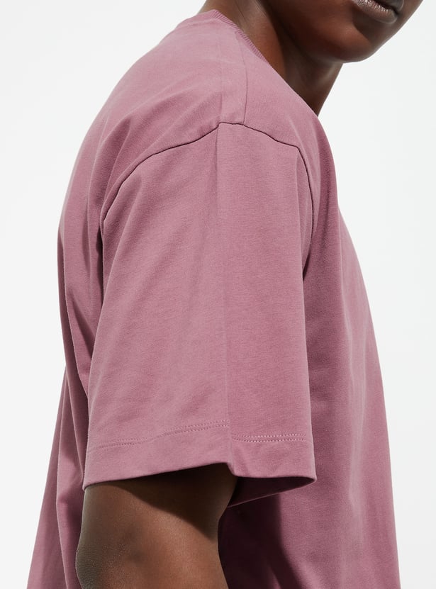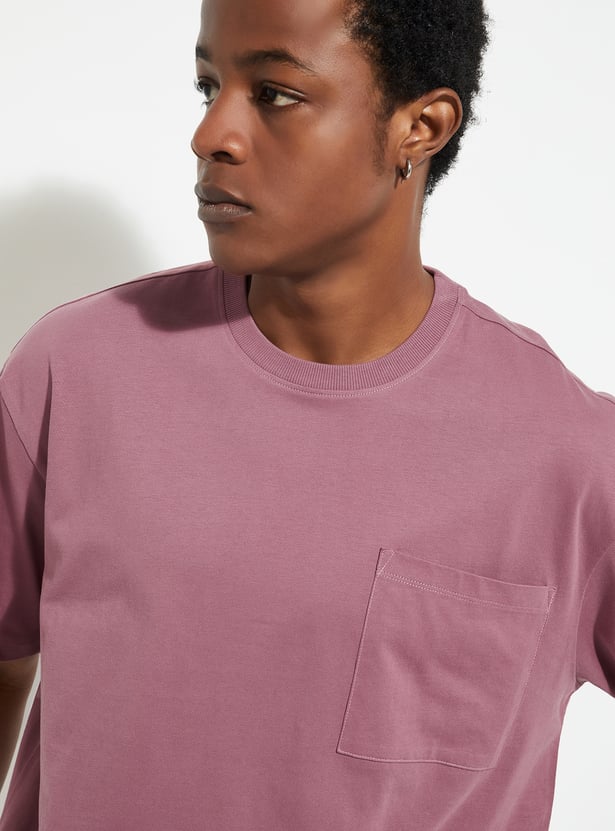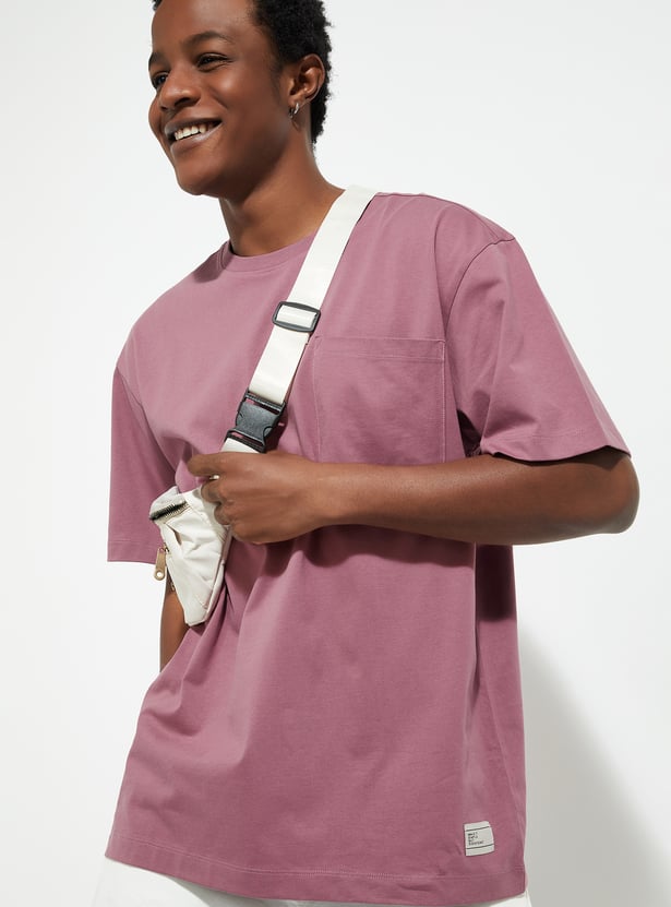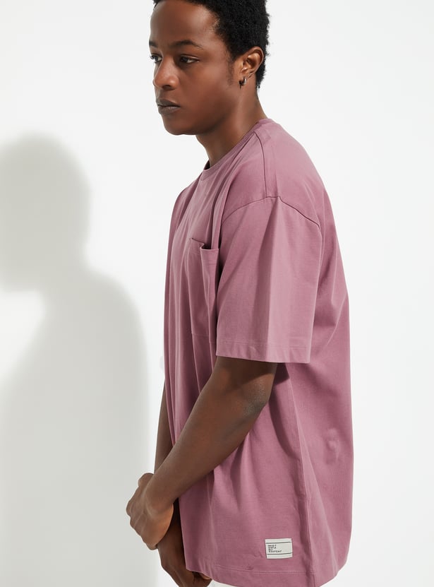 Upgrade your casual wardrobe with this solid-finish T-shirt. Designed with a classic crew neck, short sleeves, and a patch pocket, its oversized profile delivers that perfect urban vibe.