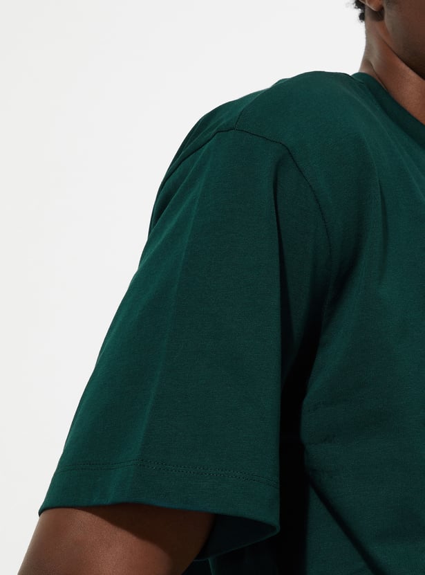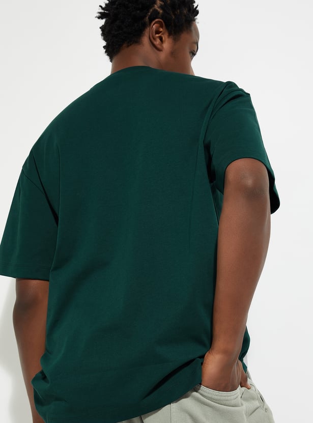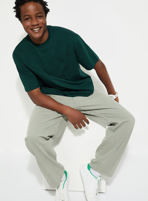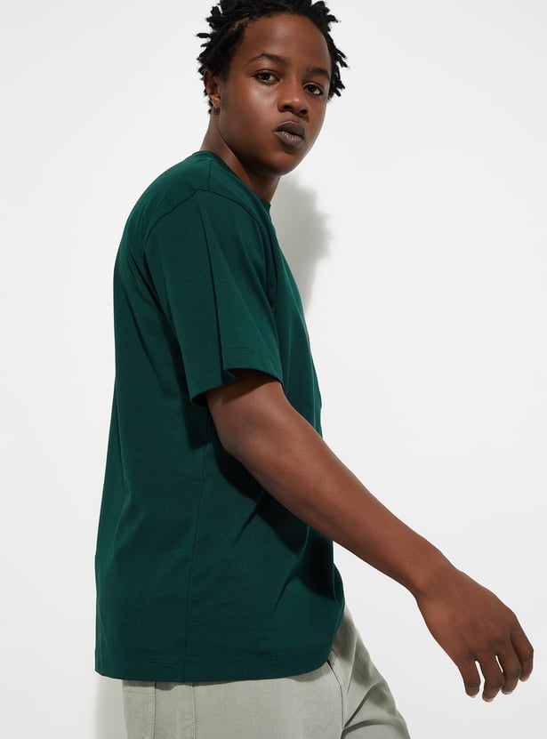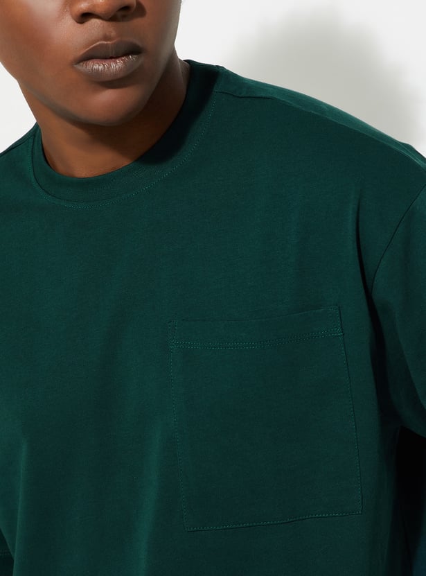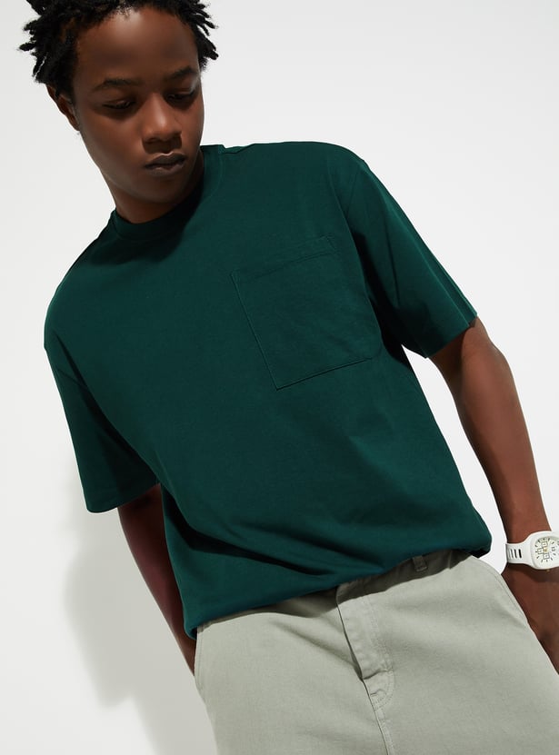 Upgrade your casual wardrobe with this solid-finish T-shirt. Designed with a classic crew neck, short sleeves, and a patch pocket, its oversized profile delivers that perfect urban vibe.
