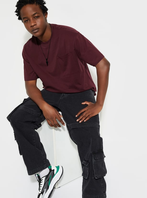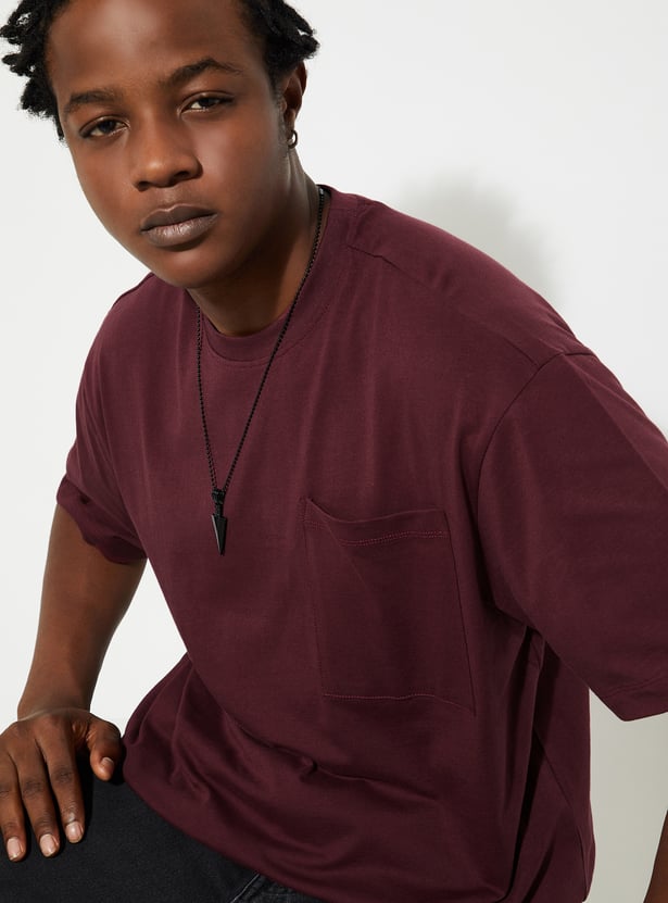 Upgrade your casual wardrobe with this solid-finish T-shirt. Designed with a classic crew neck, short sleeves, and a patch pocket, its oversized profile delivers that perfect urban vibe.