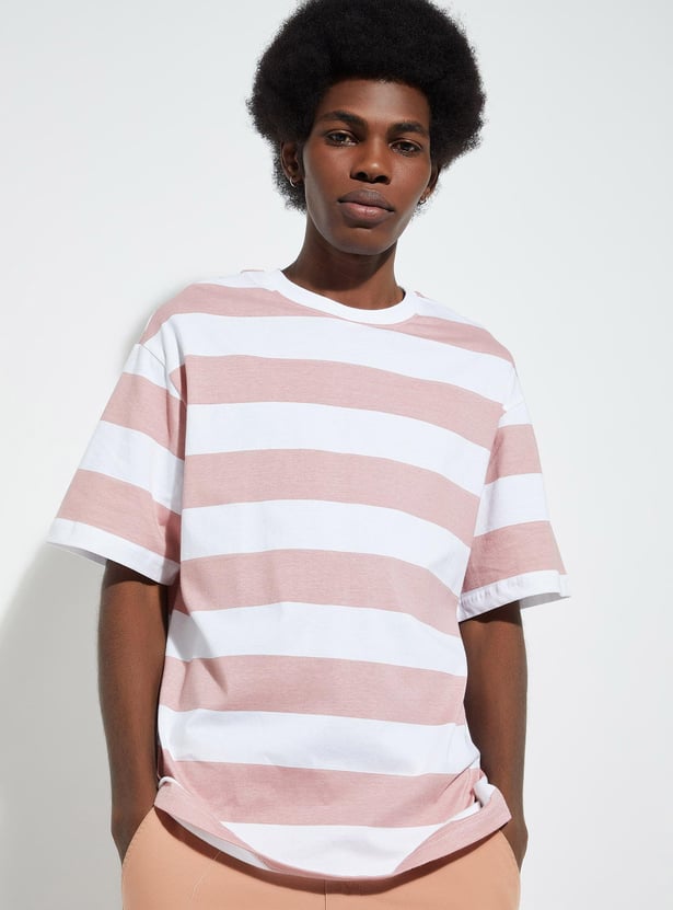 Upgrade your casual style with this trendy striped T-shirt. Featuring a classic crew neck and short sleeves, it's a versatile piece that adds a touch of flair to your wardrobe.