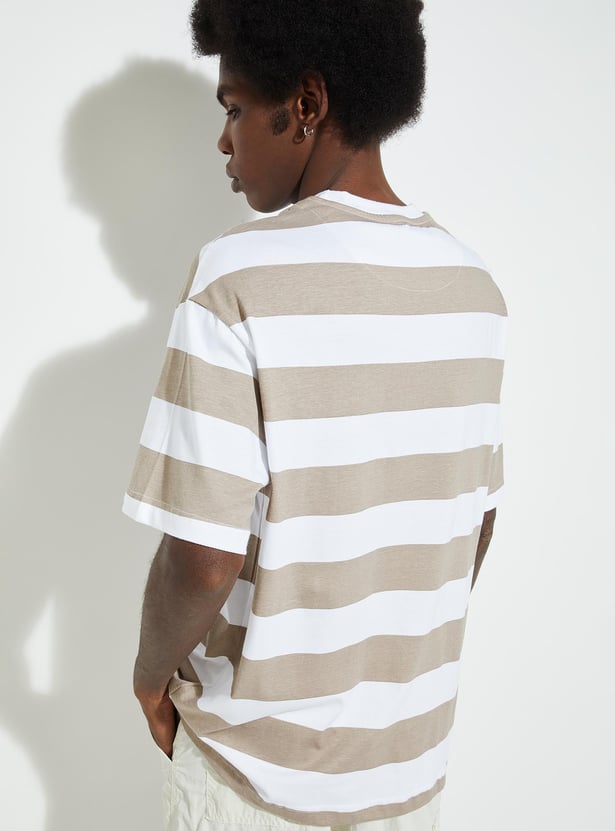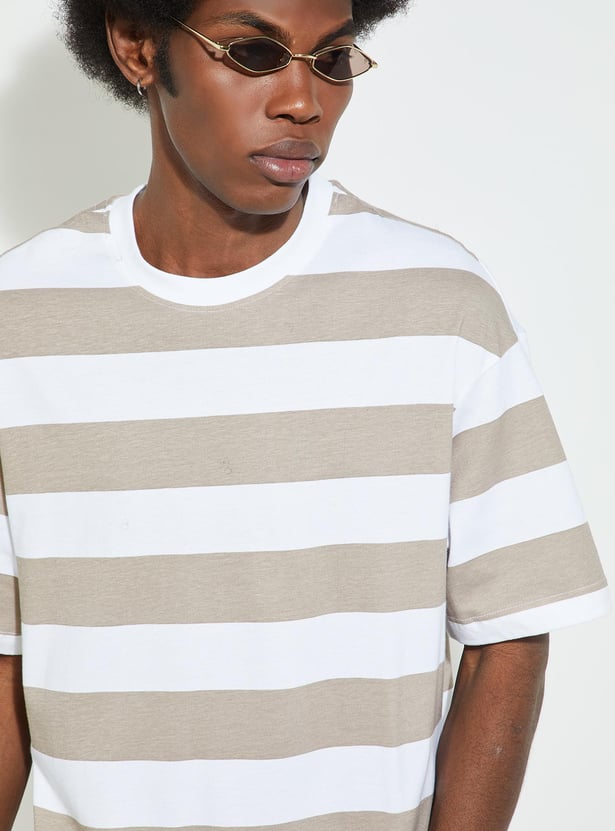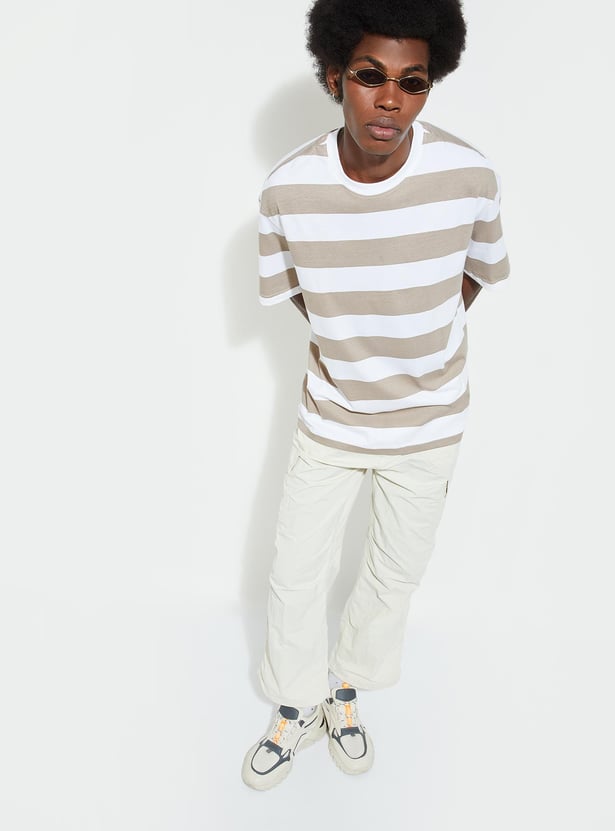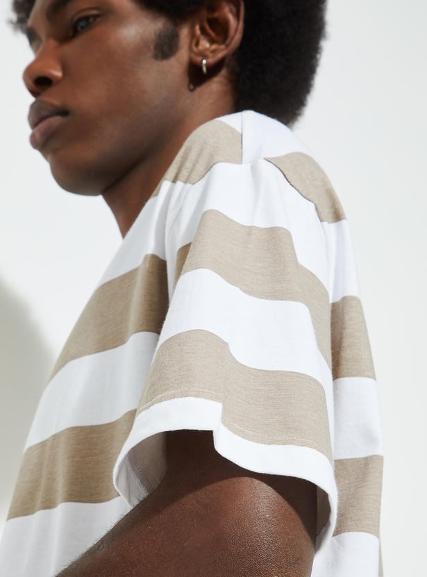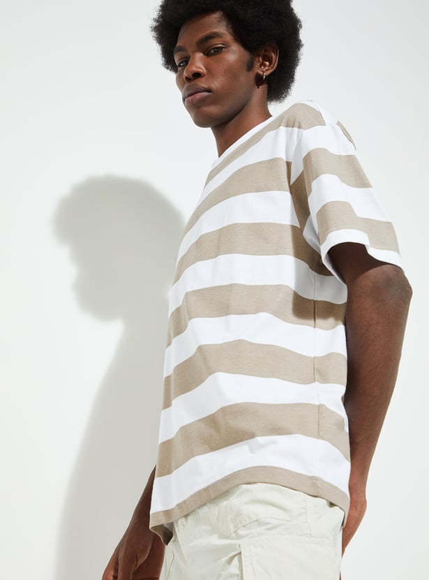 Upgrade your casual style with this trendy striped T-shirt. Featuring a classic crew neck and short sleeves, it's a versatile piece that adds a touch of flair to your wardrobe.