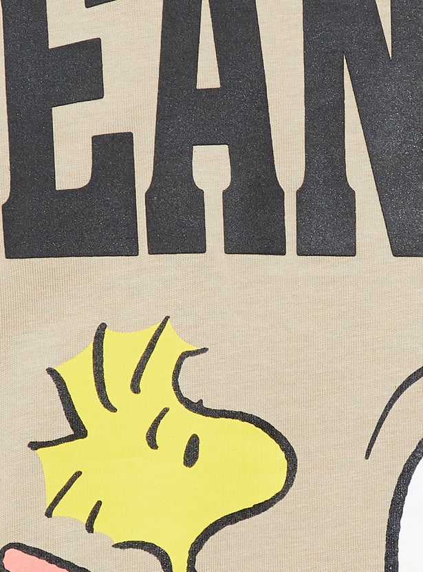 Bring a dose of nostalgia to your wardrobe with this Peanuts print T-shirt, perfect for fans of the iconic characters. Featuring a classic crew neck and half sleeves, it blends comfort with playful charm.