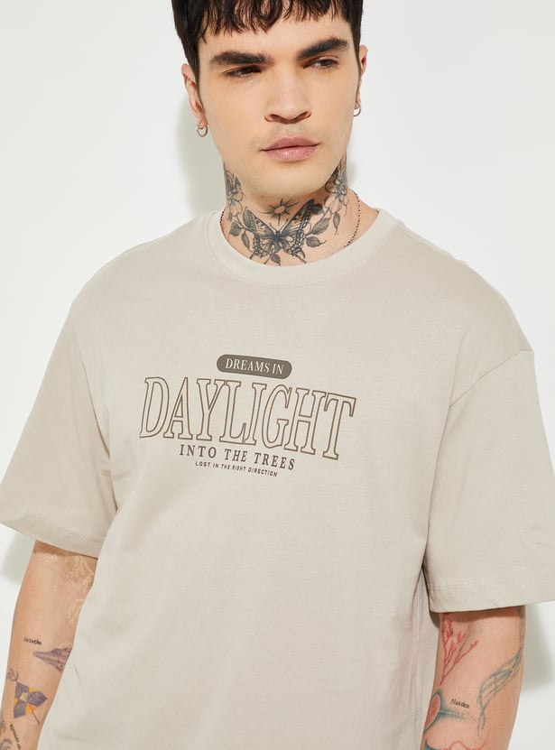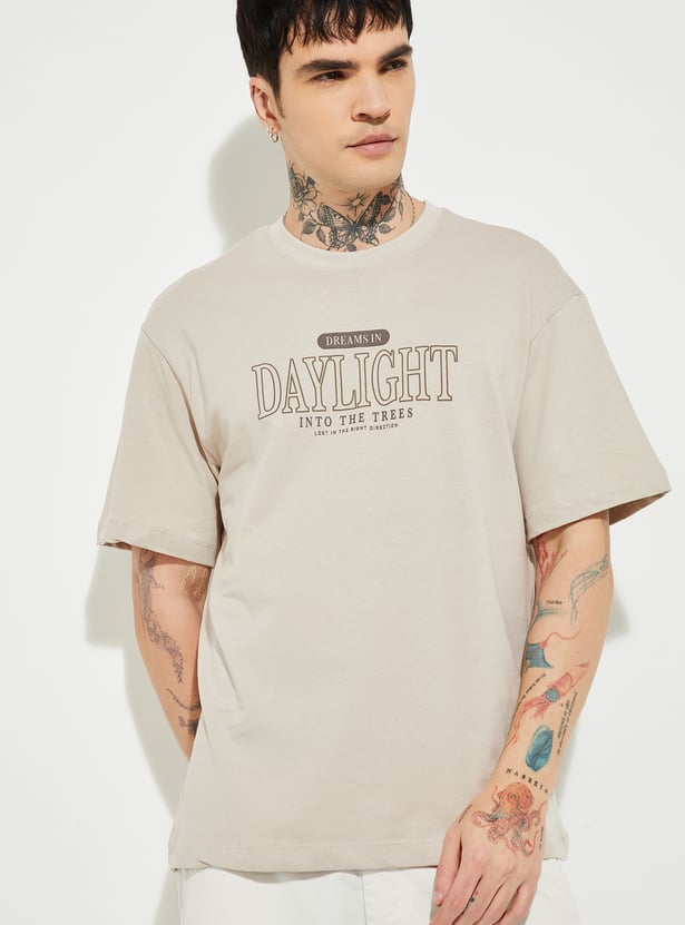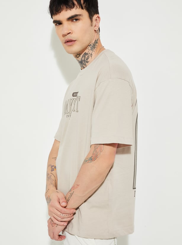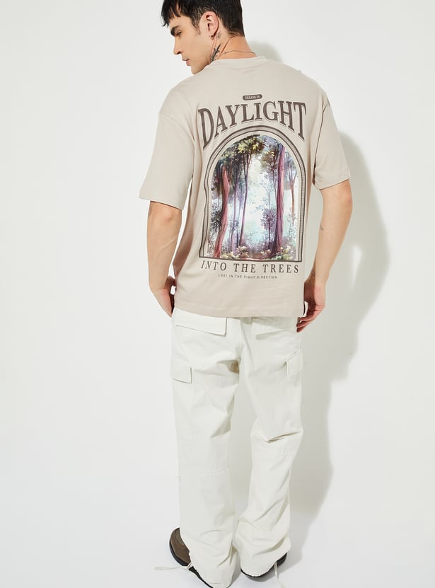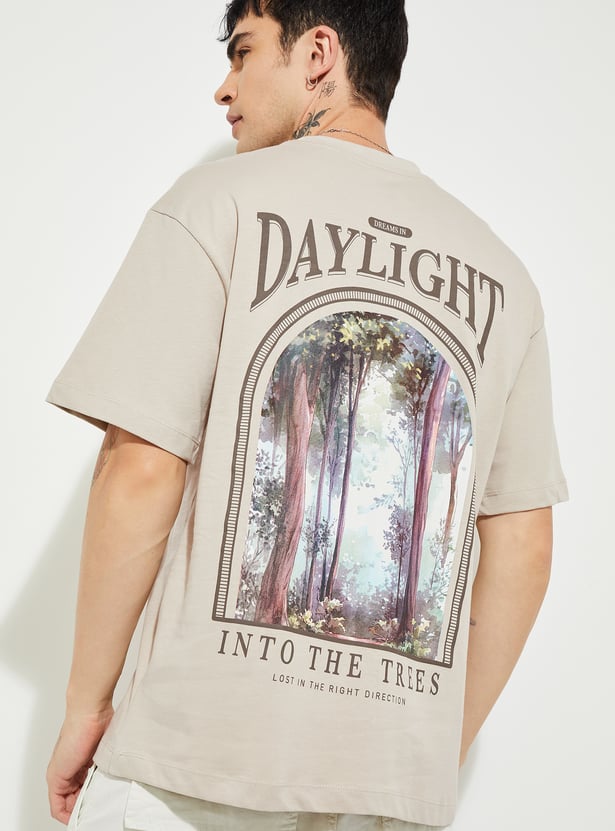 Men’s oversized printed T-shirt designed with a classic crew neck and comfortable half sleeves for a laid-back fit. Featuring front and back prints, it adds standout character to everyday casual and off-duty looks.