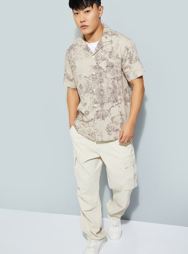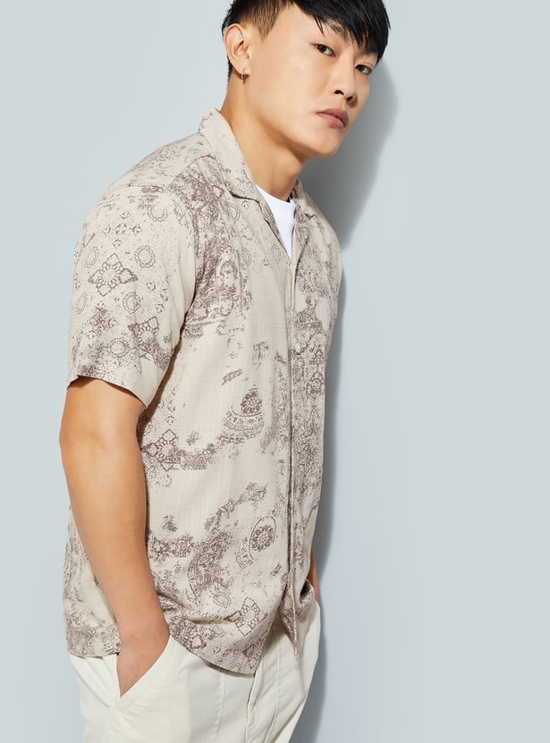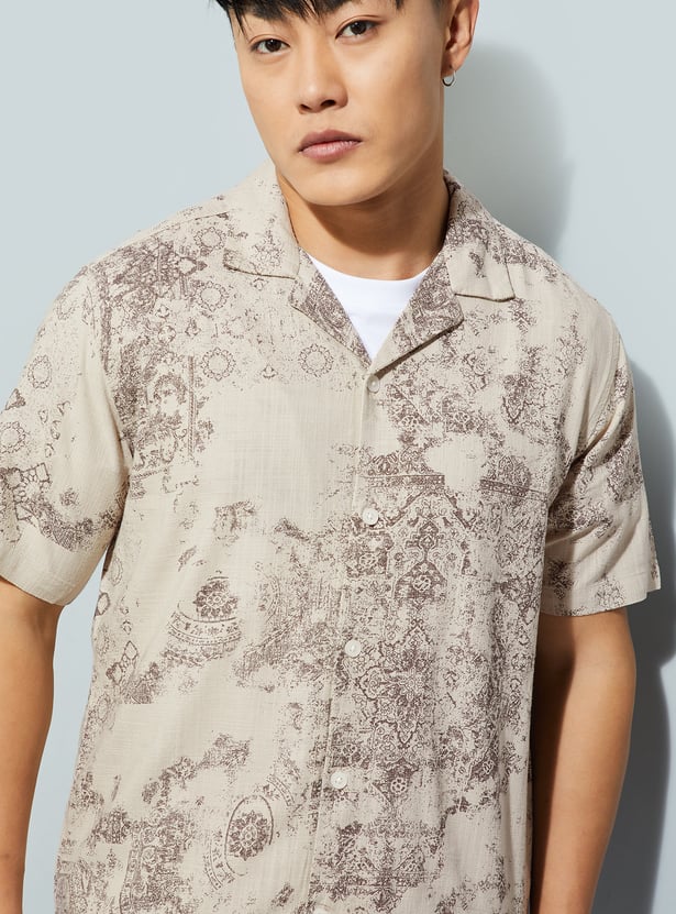 Add a touch of effortless flair to your wardrobe with this printed regular-fit shirt. Designed with a resort collar and half sleeves, it channels easy vacation vibes with a clean, modern edge. The straight hem keeps it relaxed and versatile, perfect for both casual days and evening plans.