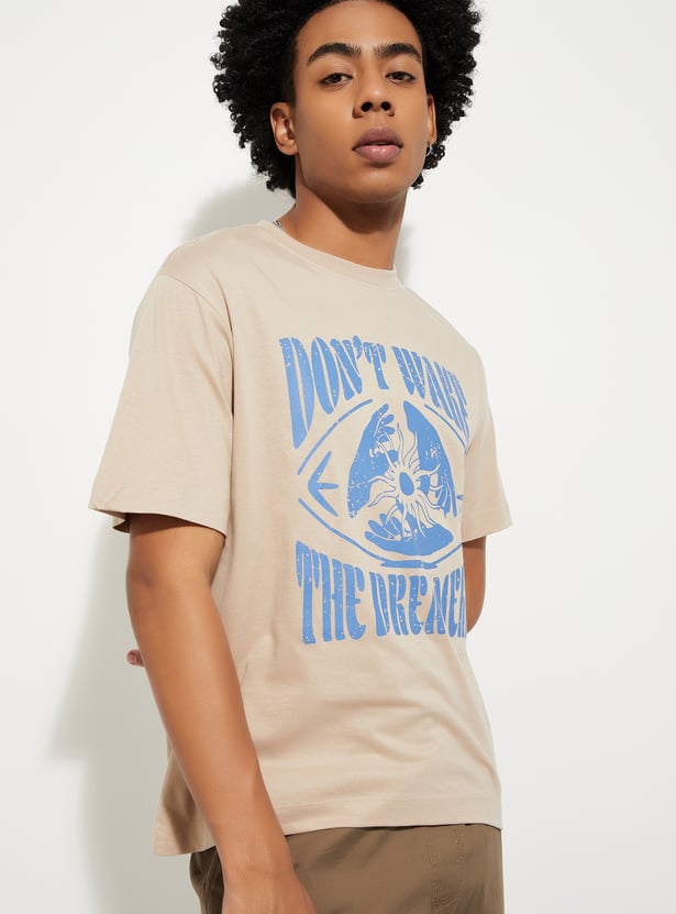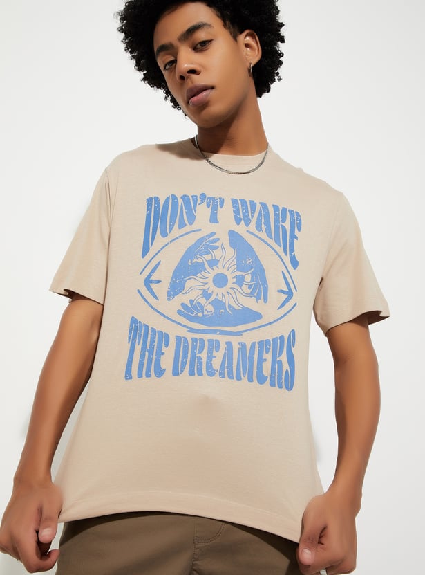 This printed t-shirt features a classic crew neck and half sleeves for a comfortable, laid-back look. The relaxed fit ensures all-day comfort, making it a perfect go-to piece for casual outings or relaxed days at home.
