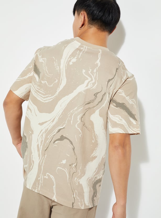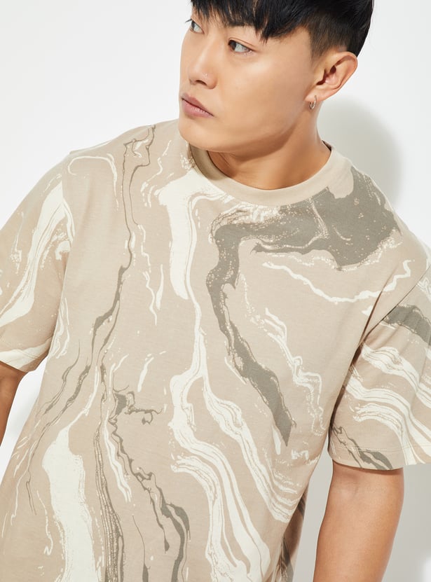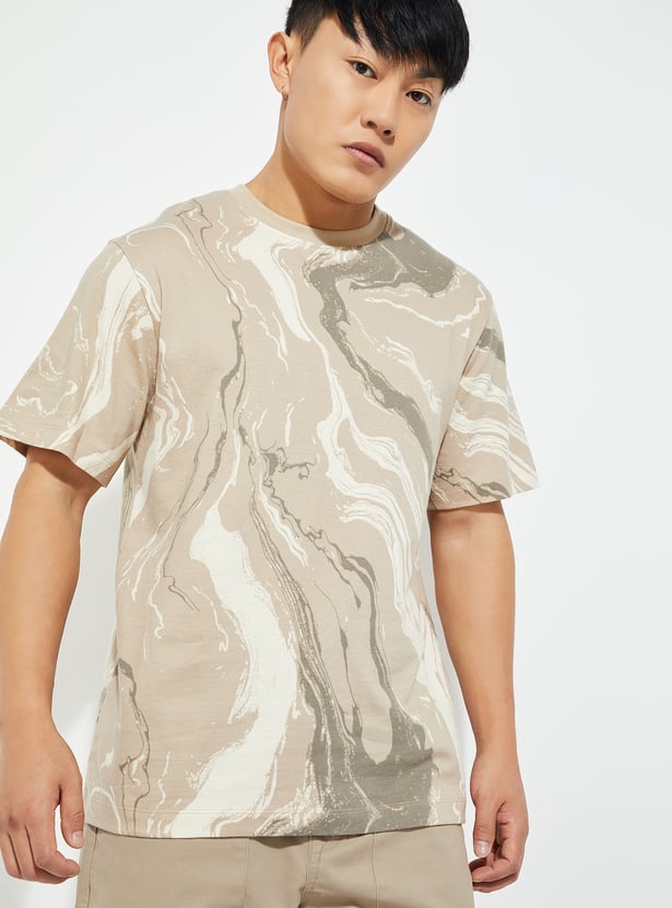 Refresh your casual lineup with this marble-print T-shirt that blends comfort with contemporary style. Designed with a classic crew neck and half sleeves, it offers an easy, relaxed look for everyday wear.