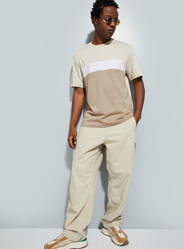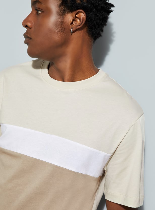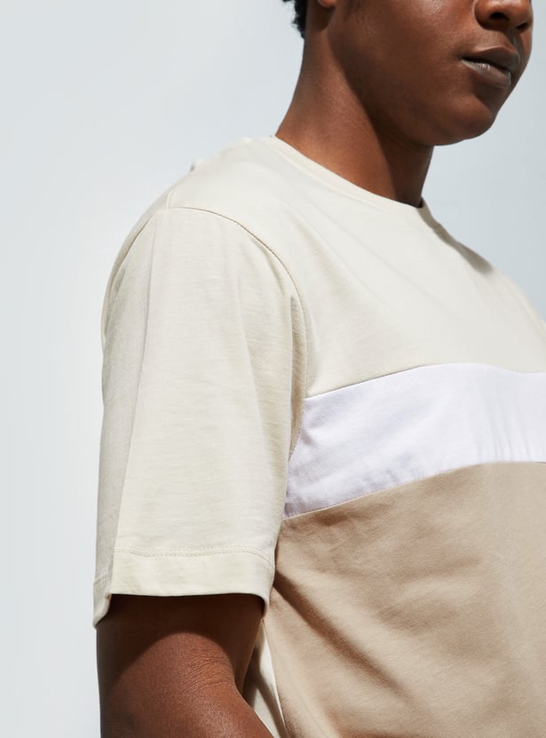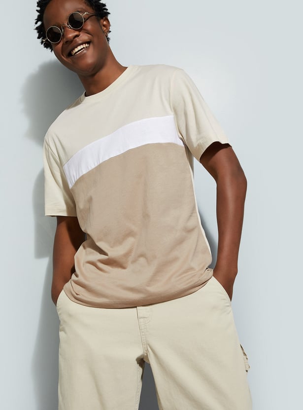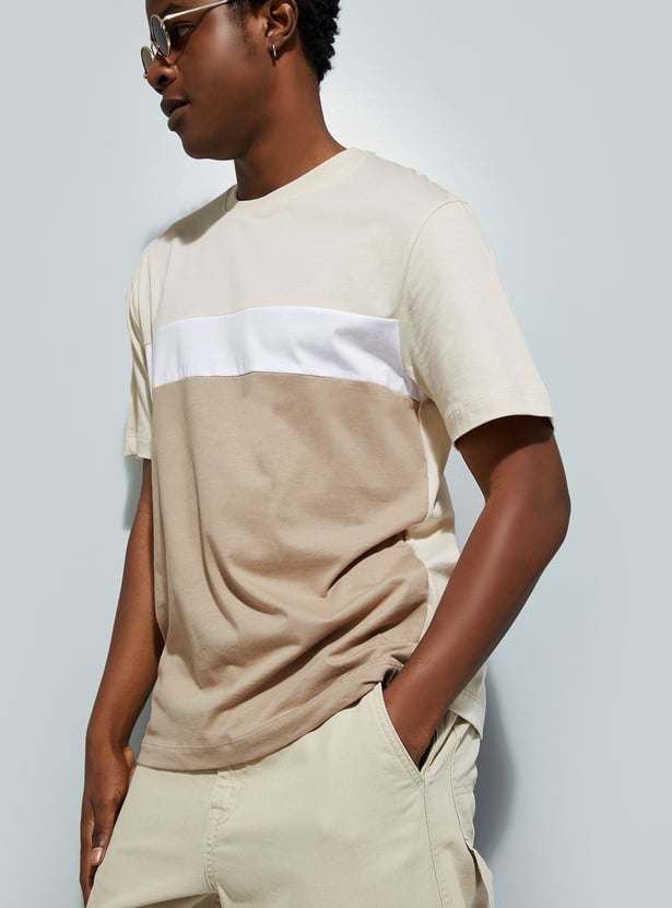 Take your style to the next level with this colorblocked T-shirt. Featuring a classic crew neck, short sleeves, and a straight hem, it combines comfort and cool for any casual occasion.