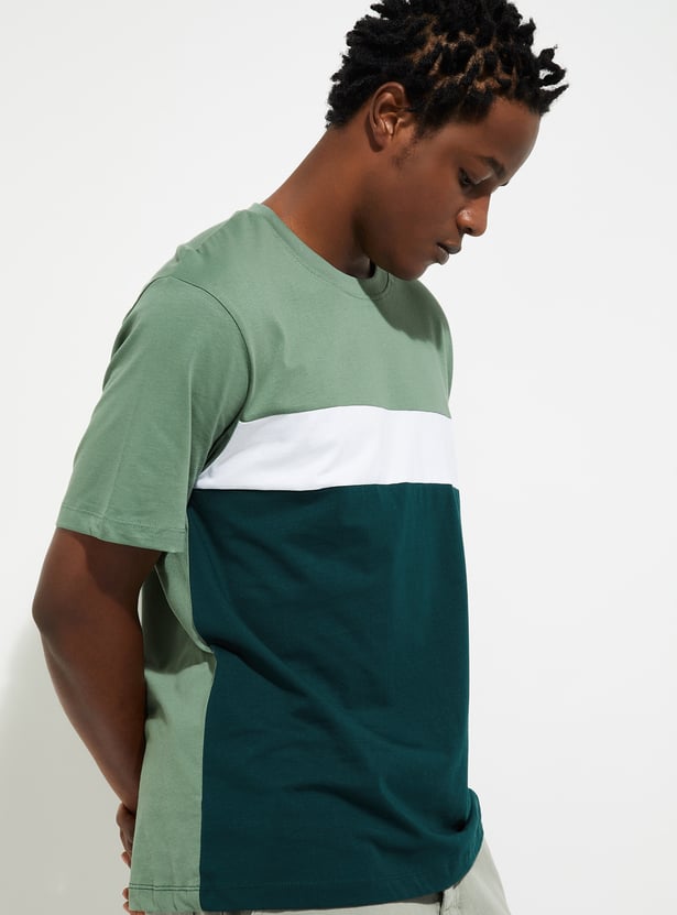 Take your style to the next level with this colorblocked T-shirt. Featuring a classic crew neck, short sleeves, and a straight hem, it combines comfort and cool for any casual occasion.