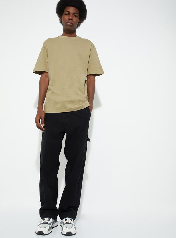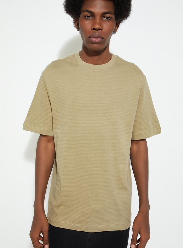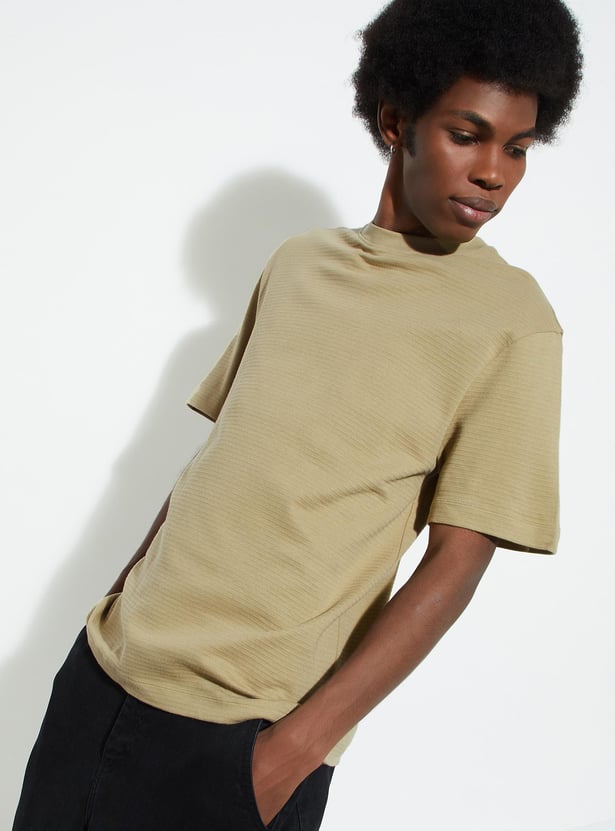 Level up your streetwear game with this textured knit T-shirt. Rocking a crew neck and short sleeves, it's the perfect blend of comfort and style for your urban adventures.