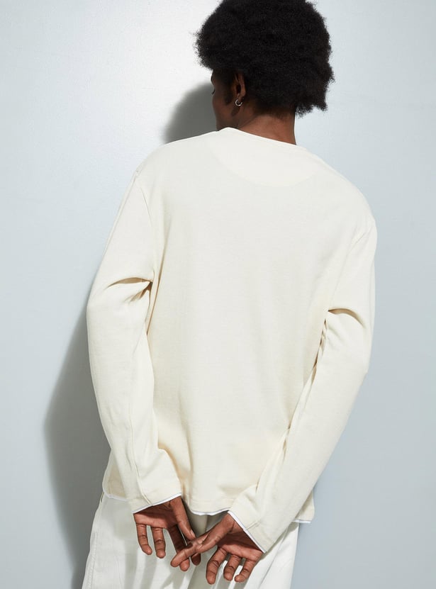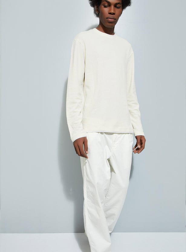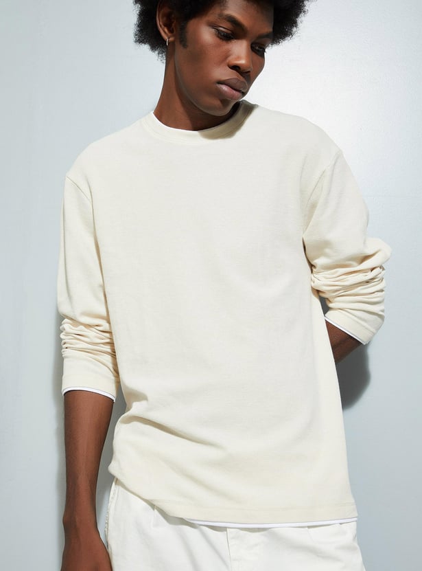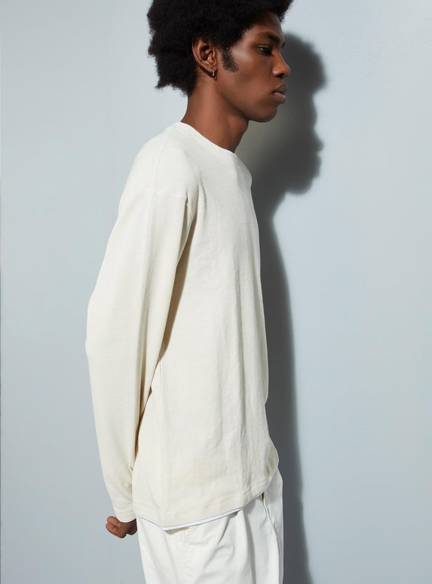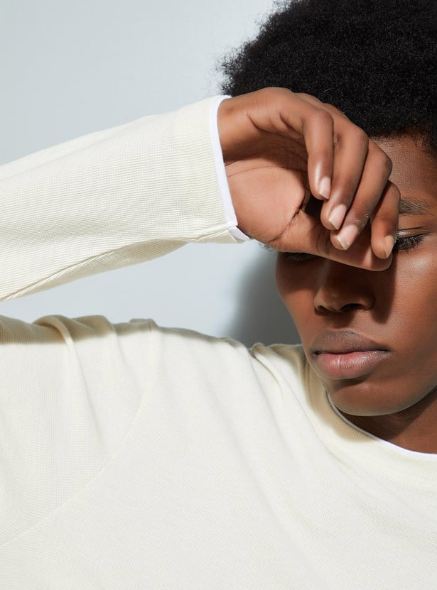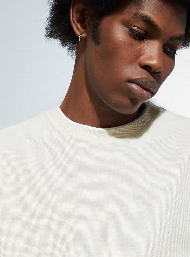 Elevate your casual wardrobe with this T-shirt featuring a textured knit finish. Designed with a classic crew neck and full sleeves, it adds a touch of sophistication to your everyday look.