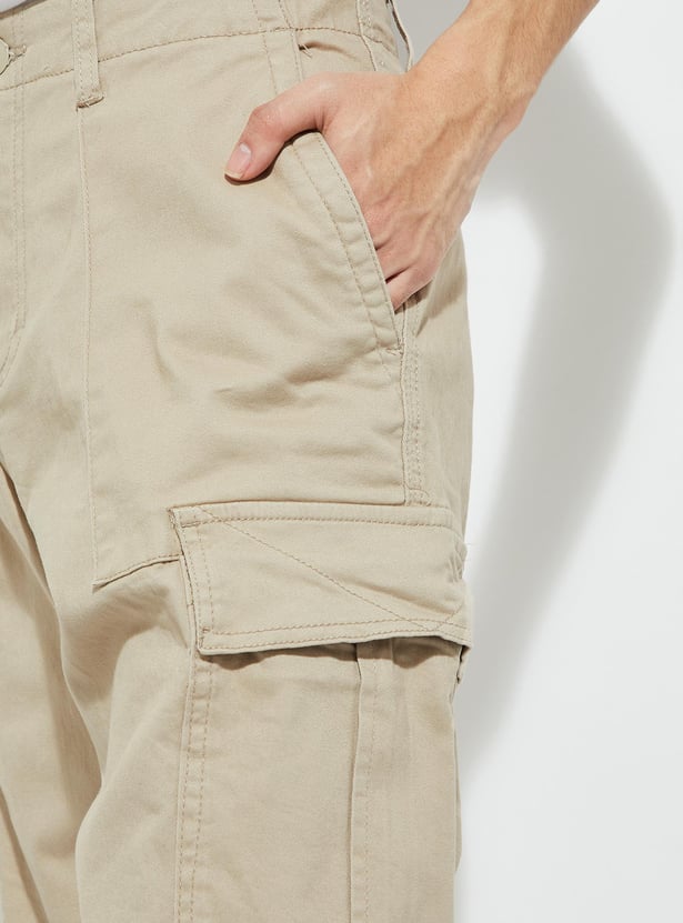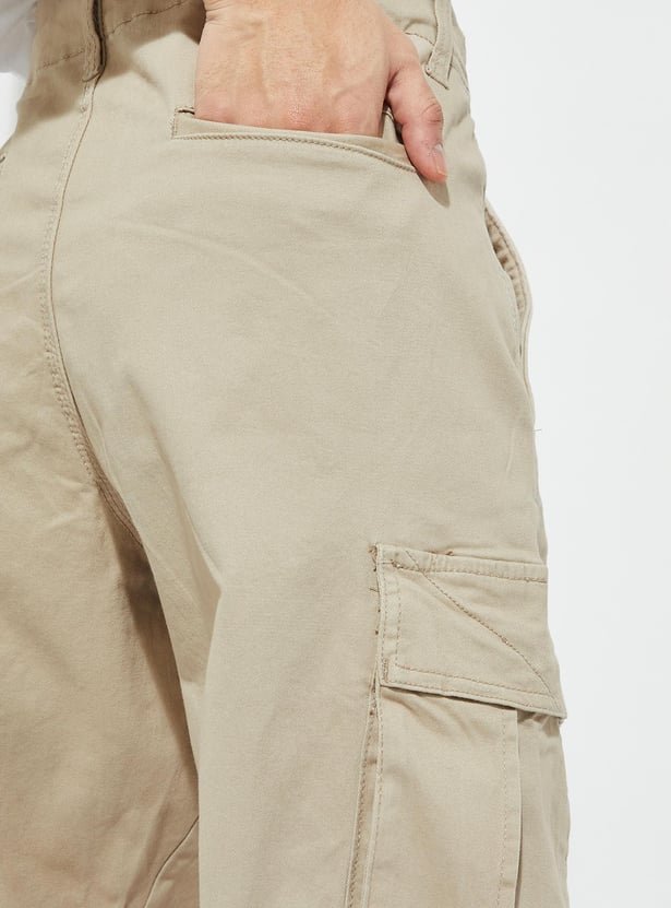 Enhance your street style with these utility-inspired cargo trousers. In a solid colour, they offer a relaxed fit and full-length profile and feature six pockets, including convenient and cargo pockets.