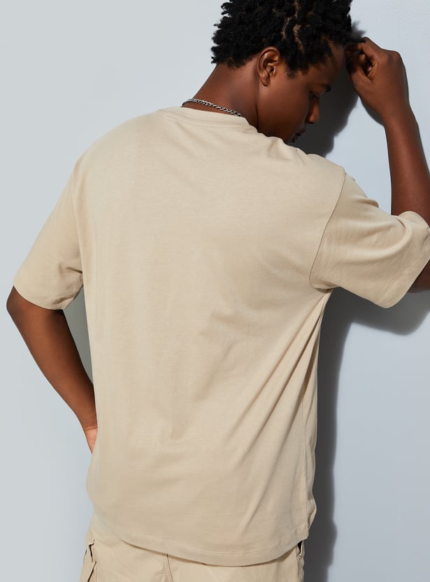 Embrace a relaxed look with this T-shirt, crafted in a solid tone and designed with an oversized fit for ample comfort. It features a crew neck and half sleeves, perfect for a laid-back and stylish vibe.